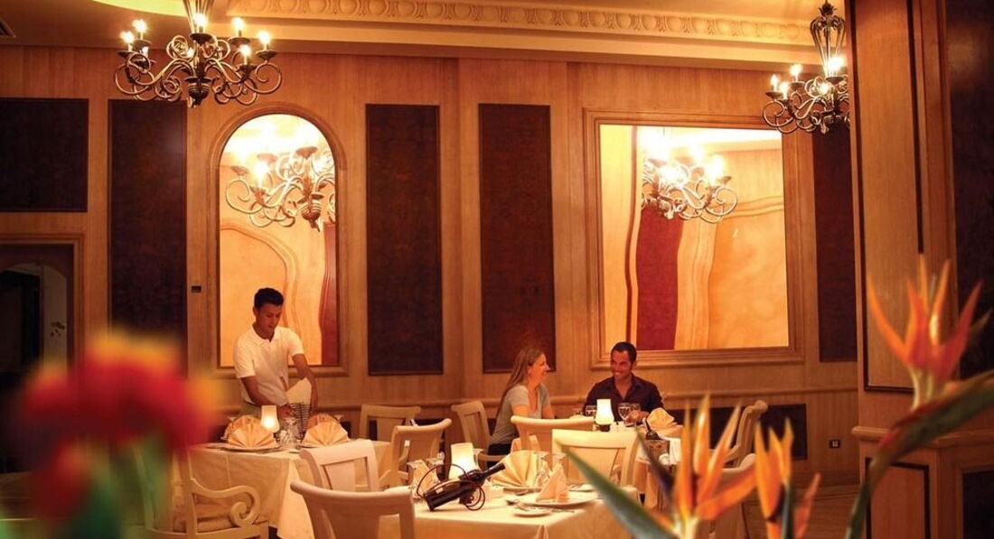 Система «все включено» включає: сніданок, обід, вечерю, закуски, каву, чай та тістечка у проміжках між сніданком, обідом та вечерею, місцеві алкогольні та безалкогольні напої; 3 тематичні шведські столи на тиждень в основному ресторані, включаючи Єгипетську ніч по п'ятницях; Під час вечері у ресторані Bay View пропонується морозиво. Платно: імпортні напої, місцеві та імпортні напої у пляшках, свіжі соки. У ресторанах діє дрес-код: не допускається вхід у купальні костюми, шорти, мокрий одяг.