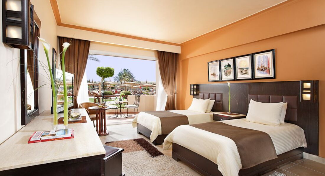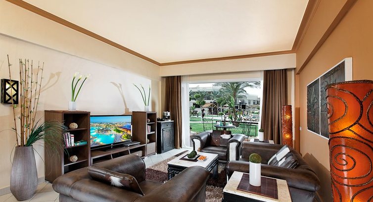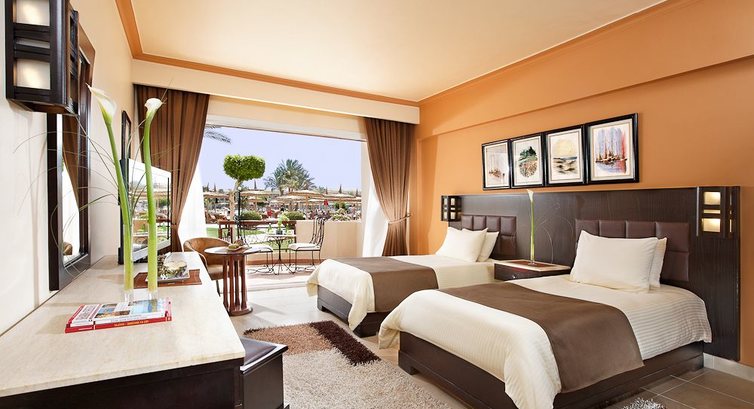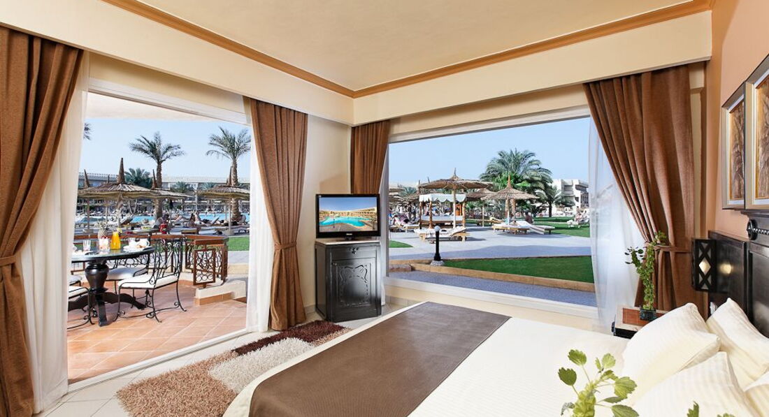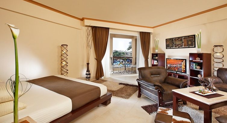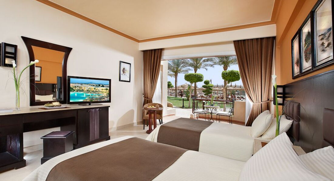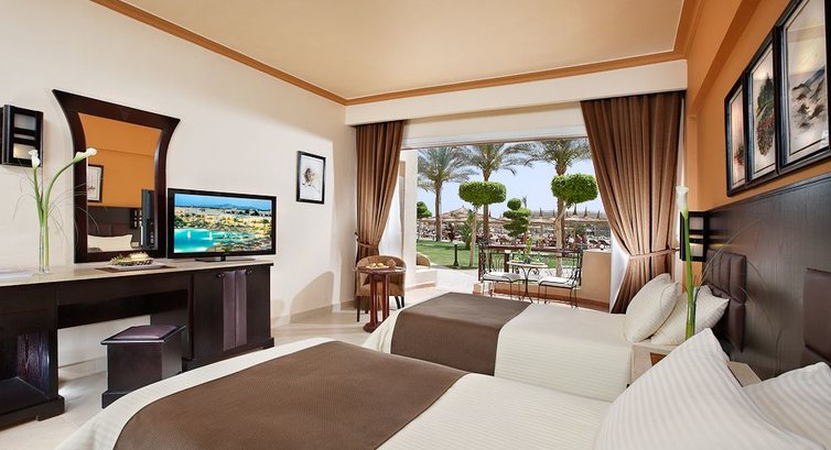 Наш первый отдых в Египте. На первый раз нормально, но больше не поедем. Первое, мы приехали в 8 утра, естественно нам сказали ожидать до 14.00. Но, в 11 к нам подошел работник с ресепшн, с предложил нам номера. За номер с видом на бассейн с нас потребовали 10$ в сутки. Ну извините.... как то уж очень обнаглели. Мы взяли ключи, от номера за который не пришлось доплачивать. Нам попался № 125. Номер находится в 5 минут ходьбы от бассейна. В общем, номер был на 4, но есть свои минусы (воняет канализацией, треснутая ванна, и валится штукатурка). Уборка. Убирали норм, хотя косяки тоже были. Мы оставляли 1$ или шоколадку. Наш шоколад для них прелесть). Территория огромная, красивая, чистая и ухоженная. Бассейнов много.Интернет есть везде, даже в номере. Есть аква парк. Море и пляж прекрасные. Понтон длинный, но нам это не мешало, пройтись к морю пару минут, а вид того стоит! Есть три входа в море, последний где можно посмотреть на рыбок с маской. Маску обязательно берите с собой!!! Погода была прекрасная, но иногда был ветер, тогда в море не пускали. Питание конечно на 4 с минусом. Каждый день одно и тоже, честно, надоедает. На ужин можно было встретить разнообразие. 1 раз нам давали морепродукты, и пару дней арбузы. Из фруктов - апельсины, финики, яблоки, лайм, дыня (не всегда), бананы (которые люди просто разгребали). Свежо выжатый сок конечно желает лучшего, я так Вам скажу, не советую. Кофе в кафе Колумбия очень вкусное, советую! На ужин иногда давали рыбу, и то, это была редкость, и не что-то особенное. Сладости, с нашими не равняться. А вот круассаны ням ням. Алкоголь и даже безалкогольные напитке на барах - какашка. Если едете, обязательно купите в Дьюти Фри, но не в Египте, здесь заоблачные цены. Экскурсии мы брали в нашего тур оператора. Мы брали дайвинг и мото сафари. ОЧЕНЬ КРУТО! СОВЕТУЮ! Всякие бесплатные экскурсии, как обзорная экскурсия и т.д., да, езжайте, смотрите, но ничего не покупайте! Эти места уже обговорены ранее, здесь только сдерут с вас деньги. Не поленитесь, прогуляйтесь пару мин за пределами отеля, есть куча магазинчиков, где Вы можете купить в 5 раз дешевле. Говорим так, как делали сами. Аниматоры молодцы, особенно нам понравилась утренняя и водная гимнастика))))) Пишите, если есть дополнительные вопросы, с радостью отвечу.
