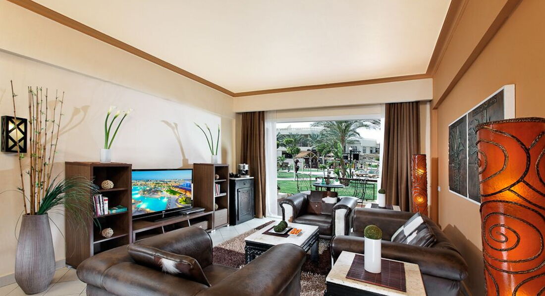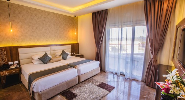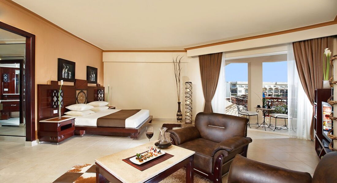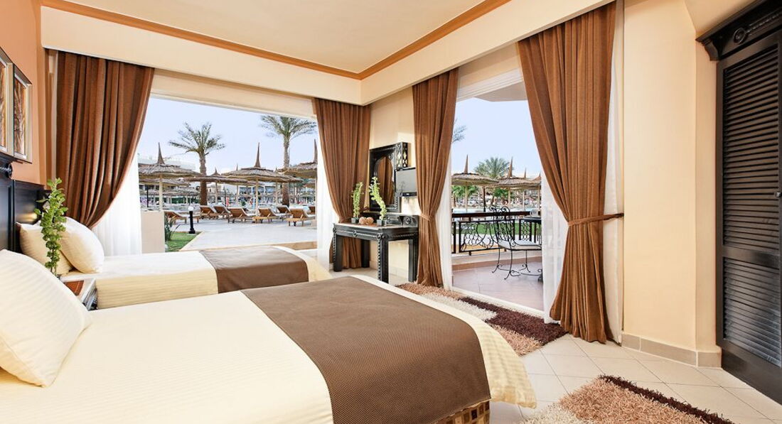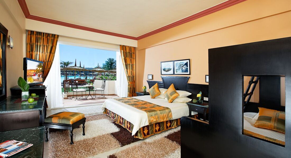 Наш первый отдых в Египте. На первый раз нормально, но больше не поедем. Первое, мы приехали в 8 утра, естественно нам сказали ожидать до 14.00. Но, в 11 к нам подошел работник с ресепшн, с предложил нам номера. За номер с видом на бассейн с нас потребовали 10$ в сутки. Ну извините.... как то уж очень обнаглели. Мы взяли ключи, от номера за который не пришлось доплачивать. Нам попался № 125. Номер находится в 5 минут ходьбы от бассейна. В общем, номер был на 4, но есть свои минусы (воняет канализацией, треснутая ванна, и валится штукатурка). Уборка. Убирали норм, хотя косяки тоже были. Мы оставляли 1$ или шоколадку. Наш шоколад для них прелесть). Территория огромная, красивая, чистая и ухоженная. Бассейнов много.Интернет есть везде, даже в номере. Есть аква парк. Море и пляж прекрасные. Понтон длинный, но нам это не мешало, пройтись к морю пару минут, а вид того стоит! Есть три входа в море, последний где можно посмотреть на рыбок с маской. Маску обязательно берите с собой!!! Погода была прекрасная, но иногда был ветер, тогда в море не пускали. Питание конечно на 4 с минусом. Каждый день одно и тоже, честно, надоедает. На ужин можно было встретить разнообразие. 1 раз нам давали морепродукты, и пару дней арбузы. Из фруктов - апельсины, финики, яблоки, лайм, дыня (не всегда), бананы (которые люди просто разгребали). Свежо выжатый сок конечно желает лучшего, я так Вам скажу, не советую. Кофе в кафе Колумбия очень вкусное, советую! На ужин иногда давали рыбу, и то, это была редкость, и не что-то особенное. Сладости, с нашими не равняться. А вот круассаны ням ням. Алкоголь и даже безалкогольные напитке на барах - какашка. Если едете, обязательно купите в Дьюти Фри, но не в Египте, здесь заоблачные цены. Экскурсии мы брали в нашего тур оператора. Мы брали дайвинг и мото сафари. ОЧЕНЬ КРУТО! СОВЕТУЮ! Всякие бесплатные экскурсии, как обзорная экскурсия и т.д., да, езжайте, смотрите, но ничего не покупайте! Эти места уже обговорены ранее, здесь только сдерут с вас деньги. Не поленитесь, прогуляйтесь пару мин за пределами отеля, есть куча магазинчиков, где Вы можете купить в 5 раз дешевле. Говорим так, как делали сами. Аниматоры молодцы, особенно нам понравилась утренняя и водная гимнастика))))) Пишите, если есть дополнительные вопросы, с радостью отвечу.