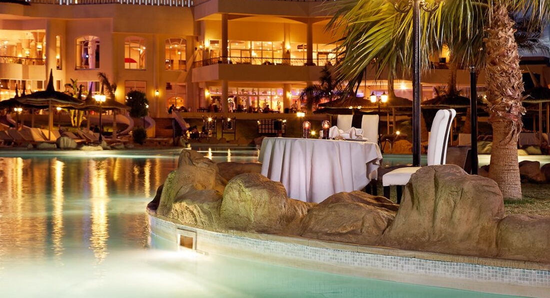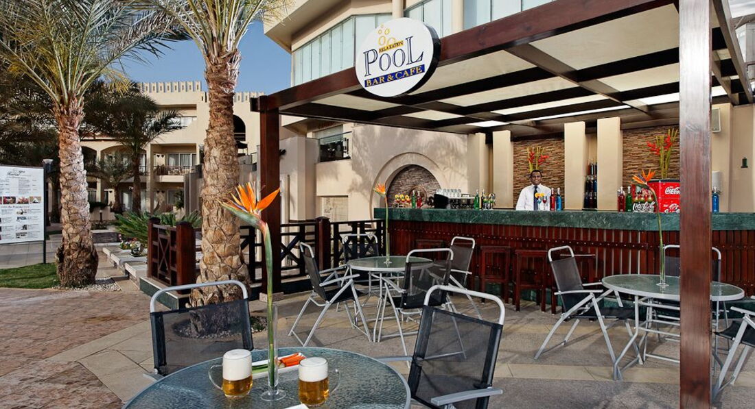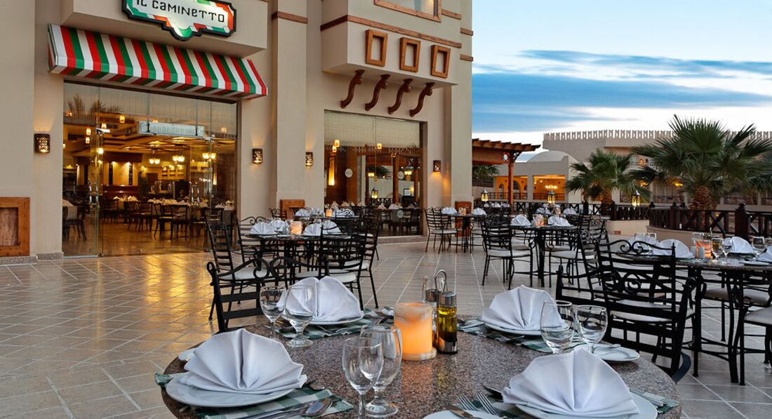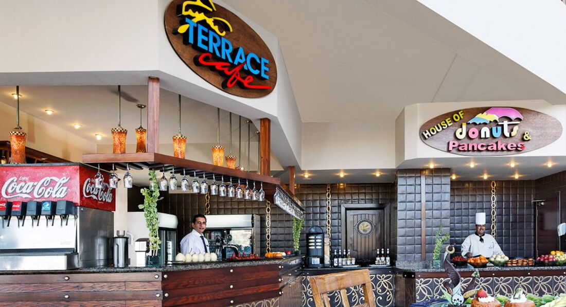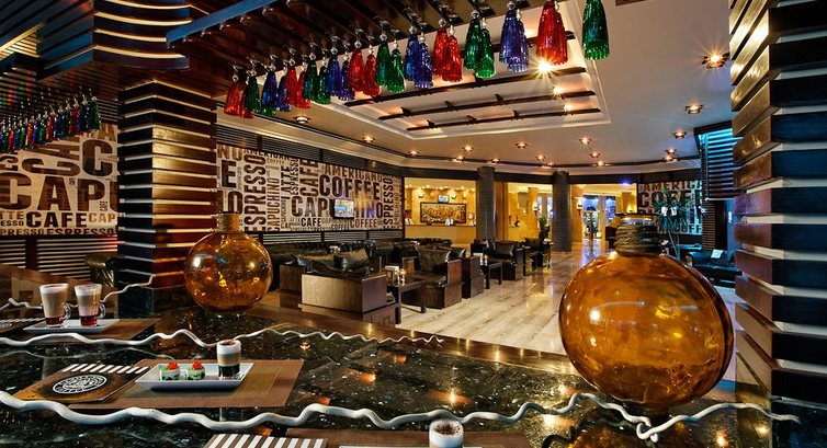 Бари та ресторани: Lobby Bar: Beverages. 12:00 - 00:00, Active Pool Bar: Baverages. 10:00 - 18:00, Relaxation Pool Bar: Beverages. 10:00 – 18:00, Terrance Cafe: Beverages. 12:30 - 22:00, La Veranda Bar: Ice Cream, Ice Cream Коктейли та кав'ярні. 10:00 – 22:00, Beach Bar: Beverages. 10:00 - 18:00 & 20:30 - 22:30, Simsema "Shisha Corner": Oriental Cafe. 19:00 - 24:00, Irish Pub: Beverages. 21:30 – 02:00, Columbus Coffee Bar. Cappuccino, Latte, Espresso, Iced Cappuccino і більше... 24 Hours