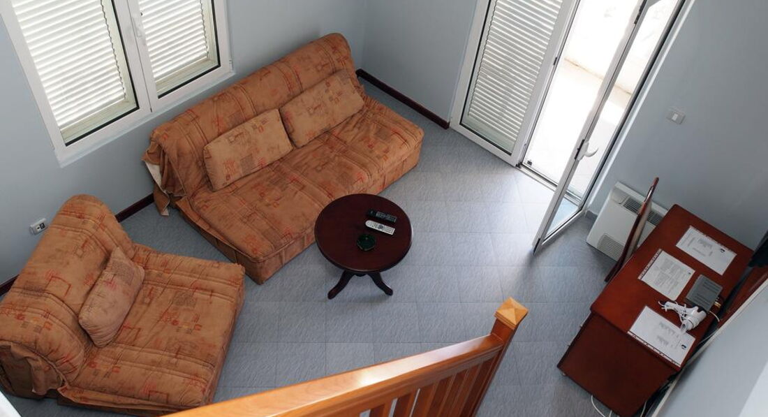 • B APP три апартаменти, дві окремі кімнати. Кухня, передпокій з диваном (додаткове ліжко). Кондиціонер, кабельне телебачення, міні-бар, ванна кімната, тераса з видом на море. У складі готелю також — дві галереї з вітальнею на першому рівні і номером з 4-ма спальними місцями на другому рівні в мансарді. , у вітальні-кутовий диван