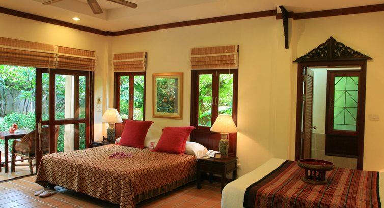 Уютный отель в формате тайской деревни среди буйных джунглей - море зелени, всё в цветах, порхают бабочки, птицы поют (после дождя к ним присоединяются лягушки), по утрам в саду шныряют белки! Небольшой кусочек пляжа (было довольно чисто за исключением дня, когда отлив оставил мусор на песке). Завтраки (бесплатные) с 7 до 10 утра, и если идти на пляж сразу после завтрака, лучше прихватить пляжное полотенце из номера - парень с полотенцами появлялся на пляже обычно в 8:30.