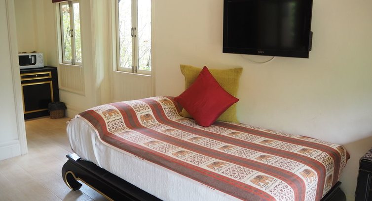 По порядку. Отель маленький, можно сказать мини-отельчик. Номера расположены в 2-этажных домиках в традиционном стиле. Входы на этажи с разных сторон, и с соседями вы не встречаетесь. В номере сплит-система, напольный вентилятор, потолочный вентилятор (огромный), жк телевизор (есть русские каналы), комод, 2торшера, диванчик, двойная кровать, санузел с душем. Отдельная кухня: мини-бар, микроволновка, комплект посуды, мойка, чайник. По отдельным заявкам выдают электроплитки.