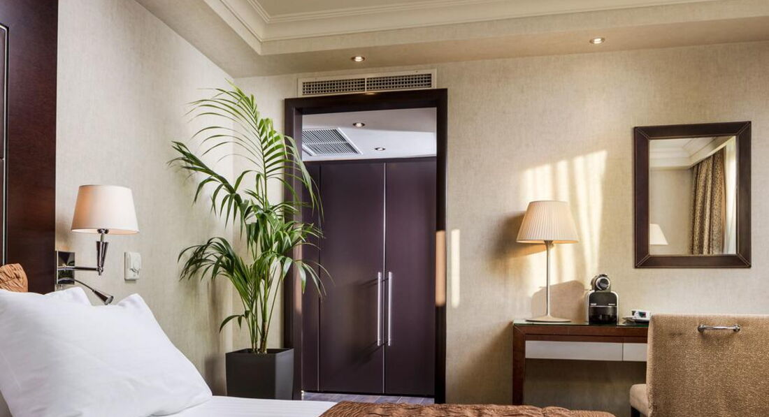 Типи номерів: 142 стандартні номери, 10 suitesУ номері: Доставка преси, Сейф, Опалення, Кондиціонер, Обслуговування в номерах Тераса, Фен, ТБ, Міні-бар, Телефон