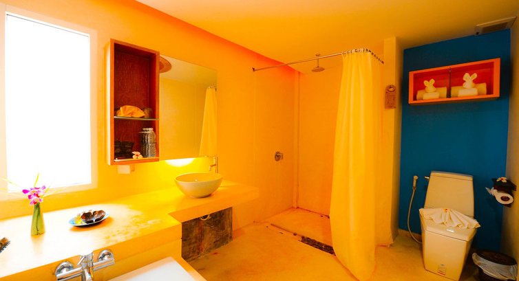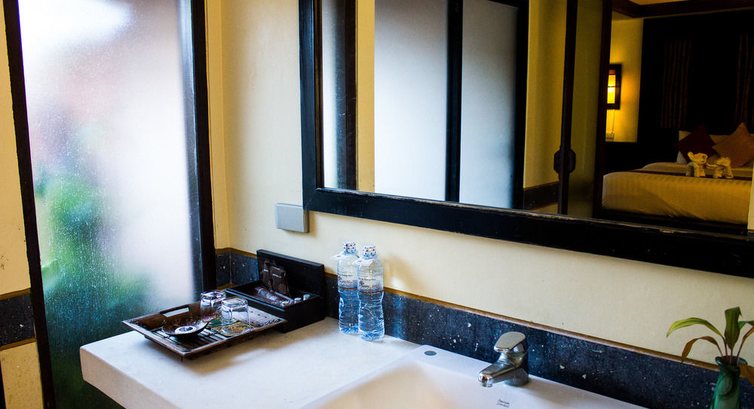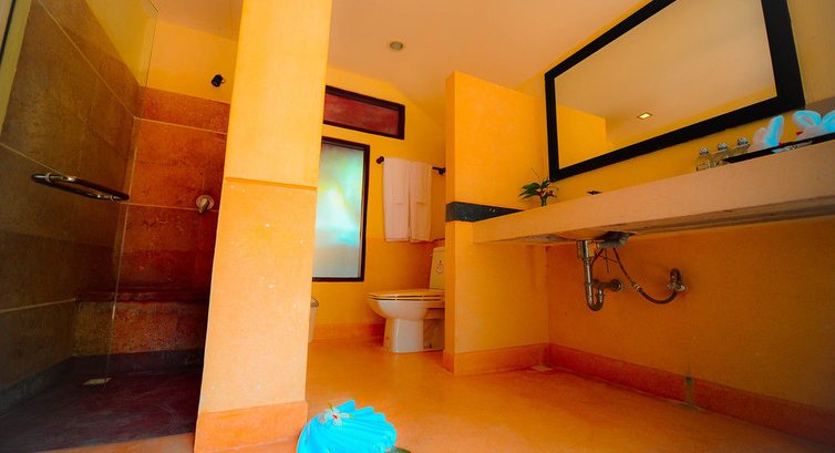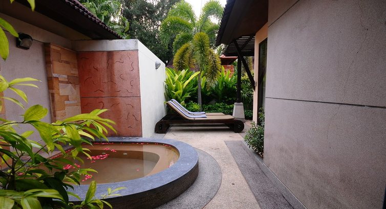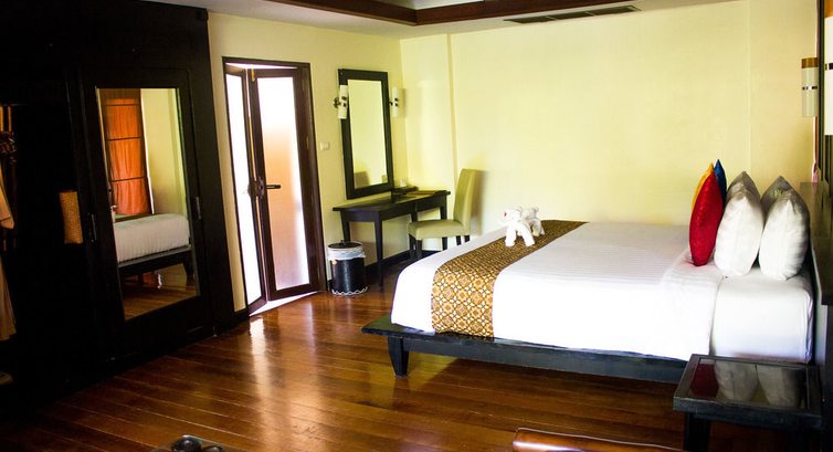 Номера Deluxe большие, удобные, но мебель пошарпанная. Сантехника не новая, но исправная. Вода из крана не питьевая и периодически пахнет восточным пляжем. Но Азия - не страна евроремонтов, это надо изначально понимать. Кажется, отель задуман в аутентичном стиле тайской деревни и выполнен с претензией на дизайн. Совершенно непонятное русскому мозгу решение - стеклянная стена между санузлом и комнатой, а также дверь в санузел в решеточку. Находясь в комнате - все видно и слышно, что делается в ванне и туалете. Но видимо для тайской деревни это обыденность :) Кондиционер и холодильник очень мощные. Есть много евророзеток 220 вольт. Пульт управления светом и кондиционером единый электронный. Еcть фен, чайник-термопот, набор чашек и пакетики Липтон, сахар. Телевизор ЖК, русских каналов нет, те что есть - с сильной рябью изображения. Есть DVD плеер!!! Знали бы - привезли бы диски. А так непонятно зачем. Есть циновки для пляжа, удобные сумки, зонты, аккумуляторный фонарик, тапки, халаты, одноразовые зубные щетки, паста, шампунь, гель для душа и шапочки. Полотенца для пляжа выдаются бесплатно у бассейнов. Не везите с собой лишнего. Есть диванчик с журнальным столиком. В номерах нет только утюга и сушилки для белья и полотенец, хотя свободного места много. В номерах есть бесплатный Wi-Fi, но медленный и то есть, то нет. На почту хватит, на что-то большее - не уверен. На втором этаже почти нет комаров и ползучих гадов. Любителей бунгало предупреждаю - ночью вас сожрут комары - берите из России Фумитоксы и спреи-москитолы. Все потому, что в приватных коттеджах перед каждым номером есть тайский дворик: джакузи и прудик с какими-то кувшинками. В пруду плавают рыбки (и живут комары). Смотрится очень просто и необычно. Джакузи своеобразное. Это так сказать прудик с мраморной плиткой, в России многие делают такой у себя на даче для садового ландшафта, но не купаются в нем, а сажают пластмассовых уточек и ставят фонарики. Он вызывает не романтику, а скорее какое-то чувство опасения. Но изрядно напившись, залезть туда будет интересно. Так сказать уединение с комарами. Просто и необычно. Для любителей тайской деревни :) Комнаты в Privacy Cottedge почти такие же, как Deluxe, только шкаф побольше и посолиднее выглядит ванна и туалет, плюс два персональных лежака во дворике около "джакузи". Сравнивая номера Deluxe и Privacy Cottedge, нам, если честно, больше понравился номер Deluxe в здании, но при условии, что будет второй этаж. Первый этаж в здании выглядит очень неуютно. Но я не настаиваю, каждый вправе выбирать сам.