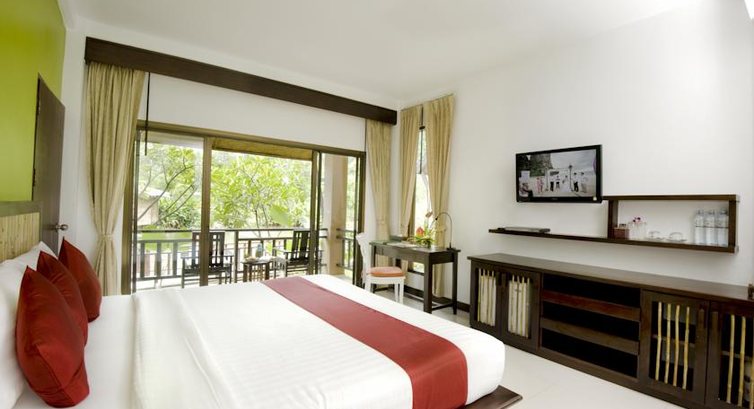 отель хороший.вокруг живописные скалы, вся природа девственно красива. прямо по балконам скачут полудикие обезьяны. завтраки вкусные, но однообразные. номера стандартные, есть тапочки и халаты, но прибирают не очень, за 10 дней влажной уборки мы так и не дождались. работники отделя говорят только на английском, русский не понимают вообще. пляж оч близко, до обезьяннего плажа - минут 7-10 хотьбы через жипописные скалы. территория полуострова небольшая, немного скучновато, но 100 руб. с человека и вас на лодке доставят до цивилизации - аонанга. вообщем съездить туда стоит!
