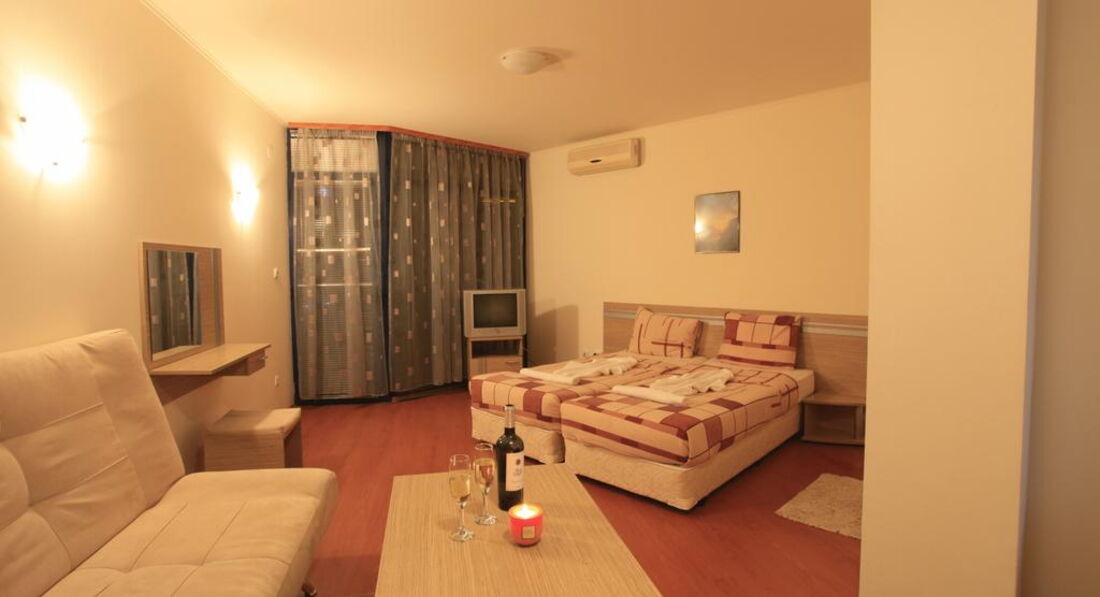 Розташування: у південній частині курорту Фрегата за 300 м від пляжу, за 3 км від центру курорту (готель Kuban) та за кілька зупинок від старовинної частини міста Нессебр, поряд автобусна зупинка.