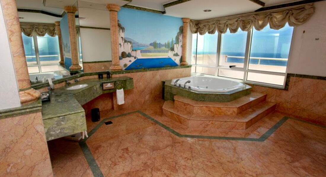В отеле: По прибытию оформление заняло минуты 3 (поскольку нас было всего двое, а время 21.00). Получили ключ-карту и отправились за носильщиком к «месту назначения». Оплачивали номер Delux, но были приятно поражены – нас разместили в One Bedrom, за что отелю ОГРОМНОЕ СПАСИБО! Номер замечательный (706), огромный, на ночь даже выключали кондей. Запаса прохлады хватало. Подробно описывать не буду, описаний хватает, нового ничего не добавлю. Есть все необходимое (включая ватные палочки, ватные диски, пилочку для ногтей, нитки с иголками и т.д.) Если кому позарез нужны тапочки – попросите и горничной (-го). Некоторая сырость в воздухе имеет место быть, вещи в номере очень долго сохнут. Никакой плесени не встретили. Ковролин не мешало бы обновить, а с учетом влажности и заменить на что-либо более практичное. Кто заказывает Standart – учтите, что балкона там нет. Сушиться негде. И он очень маленький, реально разместятся только двое (но никак не трое). Шум нам не мешал, т.к. балкон выходил на море, а спальня была с другой стороны. По отзывам проживавших в Delux - старайтесь попасть на этажи как можно выше. У кого Standart учтите еще, что со стороны города утром Вас будет приветствовать петух, который перекрикивает даже призывы муллы на молитву. Все это прикольно и колоритно. Кто едет втроем заранее уточняйте у туроператора условия размещения , дабы не столкнуться с ситуацией, когда в отеле за доп. спальное место с Вас будут требовать 20 долларов в сутки.