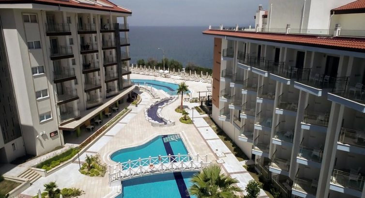 Ramada Hotel & Suites Kusadasi розташований у місті Кушадаси, біля моря. Гавань Кушадасі знаходиться за 5 хв. їзди на автомобілі, а Пляж Кушадаси - за 5 хв. їзди. Цей готель є ідеальним місцем для знайомства: Торговий центр Scala Nuova розташований за 3,1 км, Пляж Тусан за 3,6 км від нього. Готель розташований прямо біля входу до міста. Це чудовий курорт із красивими ландшафтними садами, кришталево чистими водами та нескінченним панорамним видом на Егейське узбережжя. Готель відмінно підійде людям, які хочуть відпочити далеко від міського шуму. Площа території 20 000 м².