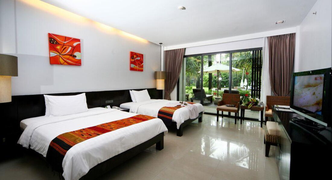 Типи номерів: • 54 deluxe oasis (40,5 кв.м + 10 кв.м. балкон, 22 dbl/32 twin, макс.3/2+2 чол, 2-3 пов, вид на сад) • 22 deluxe lanai (41 кв.м+ 23 кв.м. тераса, 22 dbl/32 twin, макс.3/2+2 чол, 1-й пов, вид на сад) • 24 deluxe jacuzzi (41 кв.м+ 10 кв.м балкон або + 23 кв.м. тераса, ліжко dbl (двоспальне), макс.3/2+2 чол, джакузі, 1-й або 2-й пов, вид на сад) • 8 ocean front villa (64 кв.м/загальна 134 кв.м, ліжко dbl, макс.2 чол, джакузі, близько до моря, вид на море) • 8 pool villa (64 кв.м/загальна 220 кв.м, ліжко dbl, макс.2 чол, вікна від підлоги до стелі, басейн, джакузі, близько до моря, вид на басейн) Компліменти іменинникам – торт, листівка, прикраса ліжка, молодятам – прикраса ліжка та ванни. Є номери, що з'єднуються (крім категорії pool villa).У номері: • кондиціонер • ТБ (є російський канал) • DVD програвач • Wi-Fi (безкоштовно) • телефон • сейф • стіл стілець • софа (deluxe jacuzzi – денне ліжко) • міні-бар • набір для приготування чаю/кави • джакузі (deluxe oasis, deluxe lanai – окремі ванна та душ) – з туалетним приладдям • фен • праска – на запит • балкон або тераса