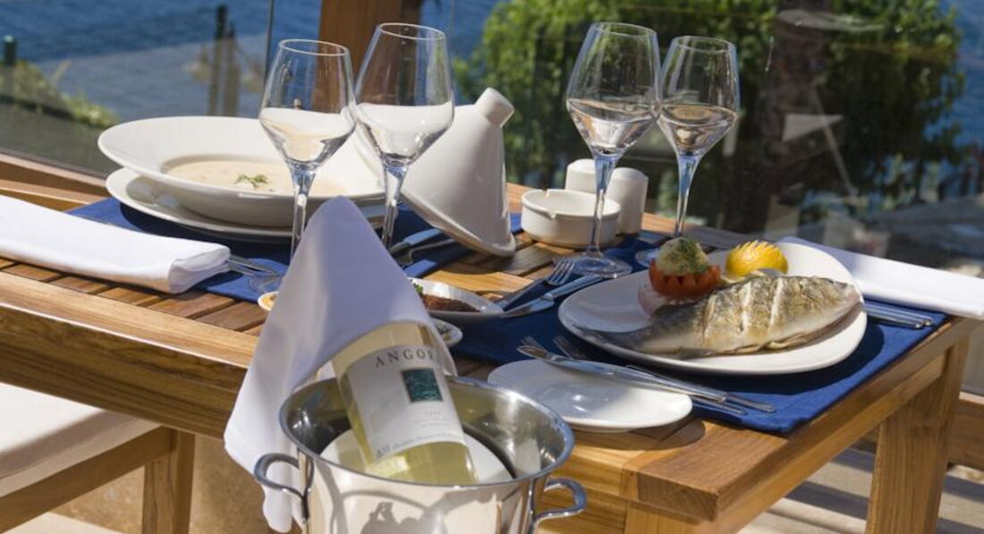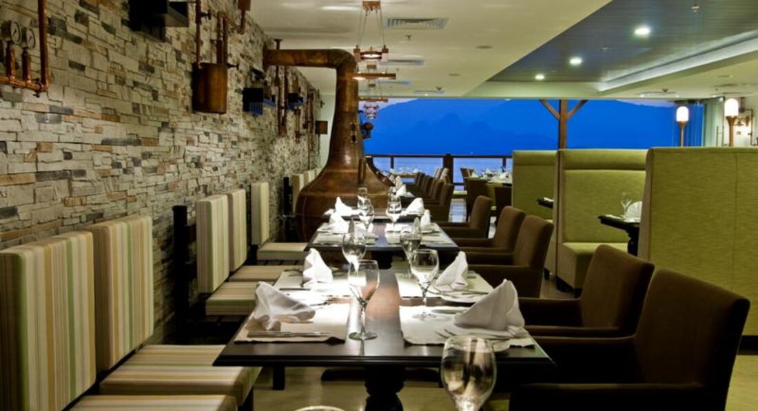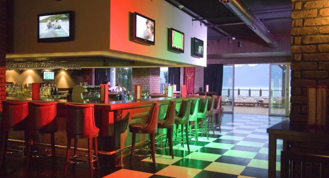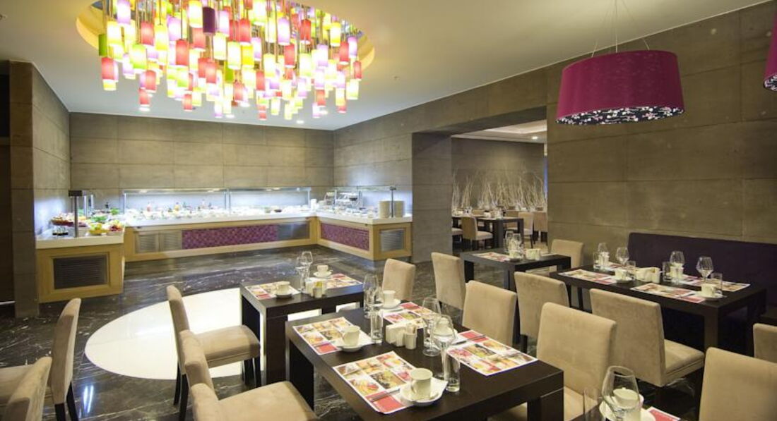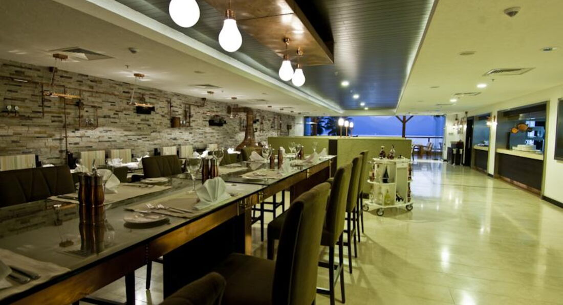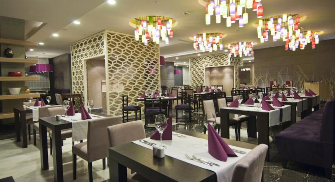 Бари та ресторани: Moods: сніданок з 07:00-10:00, пізній сніданок з 10:00-10:30, обід з 12:30-14:30, вечеря з 19:00-21:30, пізня вечеря з 00:00–02:00. Шведський стіл. Вміщує до 280 осіб у приміщенні. Verona Restaurant: пропонується італійська кухня, що вміщує до 120 осіб, години роботи з 12:00-23:30; Fish-Inn: пропонуються рибні страви, вміщують до 80 осіб, години роботи з 19:00-23:30. Потрібна попередня резервація. Лобі-бар: працює цілодобово, вміщує до 300 осіб; Club Fitness: годинник роботи з 10:00-21:00, вміщує до 20 осіб; Бар на пляжі: вміщує до 20 осіб; Indigo: години роботи з 22:00-02:00, пропонуються закуски з 14:00-17:00 (за фіксованим меню), вміщує до 200 осіб.