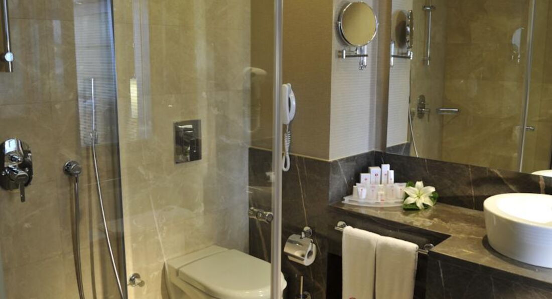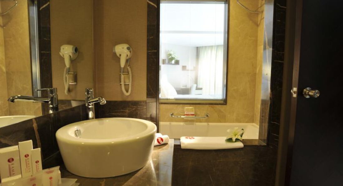 Отдыхал в Рамаде плаза в начале сентября. Находится вблизи аэропорта, что весьма удобно при трансфере. Близость к центру города дает возможность ознакомления с городом Анталья и его достопримечательностями, например, минарет Кесик часовая башня Сагат Кулеси рифленый минарет Йивли и Ворота Адриана. Парки Караоглу и Ататюрка. На старинном трамвае можно проехать до Археологического музея где можно увидеть коллекцию статуй римских богов и богатые собрания этнографических артефактов.Заселение прошло быстро и без неожиданностей.Отель производит приятное впечатление как внешним видом так и внутренней отделкой современными строительными материалами. Холл - огромный с лифтовыми шахтами. Номера располагаются по периметру. Номера - чистые и удобные для проживания. Кровать - удобная.Питание - хорошее. Стандартные завтраки: омлеты, яичница, булочки, соки.На обед - в основном блюда турецкой кухни. Все свежее и натуральное . Персонал - старательный и проявляет заботу о постояльцах. Питание брать лучше - все включено. В Лобби баре - прекрасный выбор напитков как алкогольных так и чая, и кофе. До моря нужно идти по лестнице вниз по ступеням. Отель находится на скалистом берегу. Пляжа - нет. Есть - платформа. С которой можно плавать в море. В спа - центре можно тренироваться и посетить турецкую баню. Баня чистая и аккуратная, париться можно от души на целый год хватит. Недостатков в работе отеля не заметил по причине короткого пребывания.Нет беготни маленьких детей и нет анимации. Персонал гостиницы приятный внешне. В отеле много представителей авиакомпании Норд Винд. Бортпроводники и стюардессы. Есть этажи для курящих и не курящих. В холле и барах висят строгие предупреждения на запрет курения. А так во всем чувствуется порядок и четкость в работе.Так как отель - городской рядом много многоэтажек так называемые "каменные джунгли" . Не у всех даже кондиционеры.Сушат белье на балконах, причем огромные полотнища . Пляж видимо только городской огромный, галечный.Простому туристу там будет страшновато купаться. В Рамаде маленький удобная купальня, где только "свои".Есть спасатель и бар с кофе чаем и неплохим пивом. Кеги с пивом таскают вручную вниз по лестнице. Интересное зрелище. По вечерам Рамаду подсвечивают и ее видно со всех точек города. Очень красиво. В отеле не очень много народу. По вечерам улицы запружены туристами и жителями города. Праздничная атмосфера. Продают всякие сувениры и множество других вещей.В баре в гостинице можно выпить много вкусных коктейлей бармены работяги. Всегда спрашивают со льдом или без льда. Алкоголь хороший, но весьма крепкий.На любителя выпить. Многие туристы вообще не пьют или выбирают тип питания который их устраивает.
