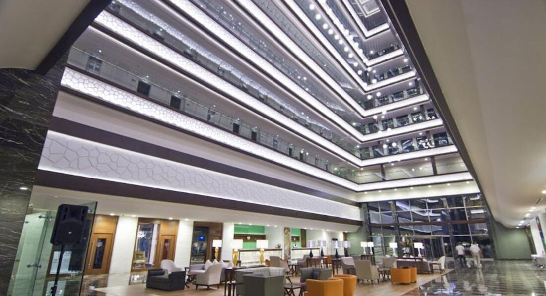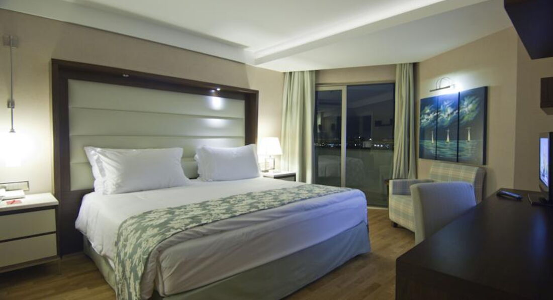 Приобретая путевку, мы выбрали номер с видом на море (он был на тысячу дороже). По приезду в отель нам сказали, что все номера с видом на море, т.к. они расположены по бокам. За что мы доплачивали, не понятно. Нас поселили в самый дальний номер на 6 этаже, сказали отель фул! Море было видно, точнее малюсенький заливчик. Т.К. мы всю ночь не спали, потом нас 3 часа возили по Анталии, мы решили сразу лечь отдохнуть. Но оказалось, что прямо под окном стройка, при чем было такое чувство, что они с утра до вечера забивают гвозди, слышен только жуткий стук, даже с закрытой балконной дверью поспать плохо получится.