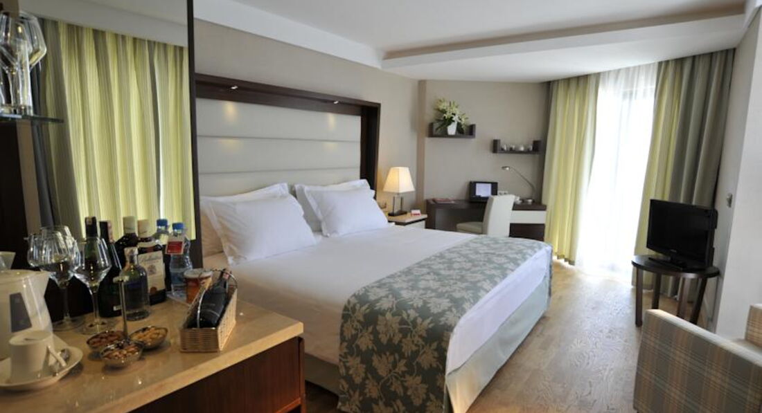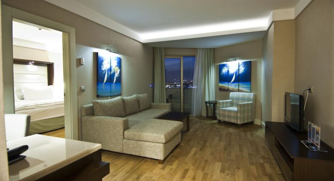 Что касается самого отеля, то мне очень понравился. Красивый современный. Номера не новые, но чистые. Сантехника работает, есть большая кровать, плазма стоит, минибар. Большой выбор еды всегда. Официанты очень вежливы. Около бассейна и моря много свободных лежаков.