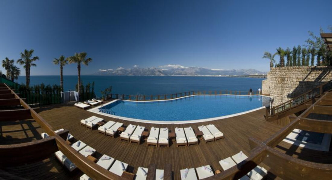 Решили сменить обстановку Белека на Анталию. Отель расположен в 10 мин. от старого города, можно совмещать пляжный отдых и прогулки. Загорать можно только на понтоне, зато чистого никакого прилипшего песка. Не рекомендую этот отель для отдыха с детьми, много лестниц, нет анимации, глубокое море. Но для взрослых - шикарные номера, стандарты с боковым видом на море, кровать шириной метра 3 :), подушки, с которыми не хотелось расставаться. Кто это ценит - тот поймет. В номере есть мини бар - бесплатно и макси бар -за дополнительную плату. Могут при выезде выставить счет за одно и тоже два раза, будьте внимательны. У нас все в итоге разрешилось. Только поэтому за сервис 4. В Турции отдыхали 12-й раз, в этом отеле самое лучшее питание: 8-10 видов фруктов, 4-5 вида рыбы (гриль, тушеная, соленая, копченая), мясо и разные овощи, качественный алкоголь, пакетированные (во всех барах) и фрэш (на завтрак). Обслуживание в барах и ресторанах прекрасное. Вечером в отеле делать нечего, или бар, или балконная вечеринка, но в Анталии и так есть чем заняться.