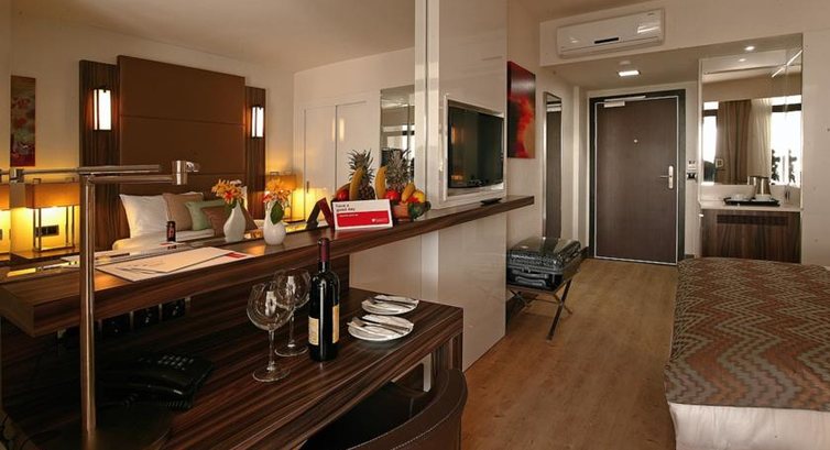 Хороший комфортабельный отель для семейного отдыха. В отель приехали около 5 утра, заселили в течение 10 минут. Номер стандартный с холодильником,телевизором,балконом,феном,душем,тапочками,гелями для душа,электрочайником и набором чая.