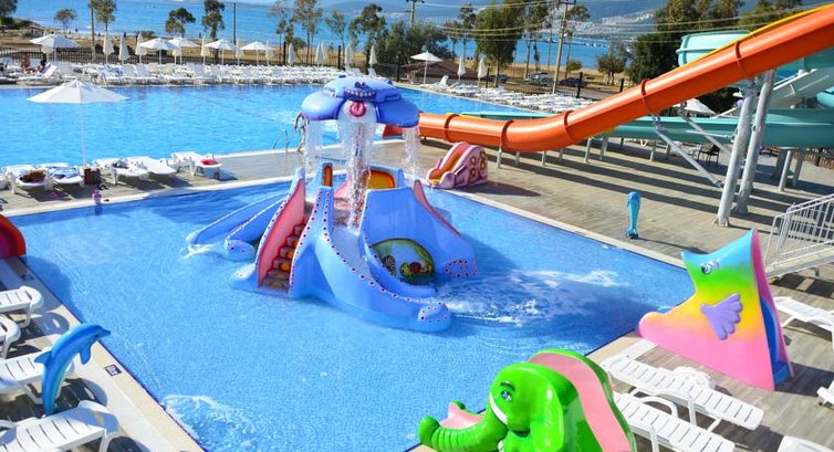 Отдыхала с дочкой 9 лет с 24 июня по 4 июля. Хотелось Эгейское побережье и туда, где мало русских. Всё это мы и получили. Хотя поначалу турков было очень много, но с 27 у них начался пост (ураза) и народу в отеле заметно поубавилось. Приехали в аэропорт Бодрума, дорога заняла 1.5 часа и в 6 утра мы были в отеле. На рецепшен сказали, что заселят часов в 9-10, но мы путешественники бывалые, оставили чемоданы в комнате для багажа, взяли купальники и пошли позавтракали, потом в бассейн, даже на море скатались на автобусе-кабриолете . В 10 часов моя карточка с номером уже лежала на стойке рецепшен, хотя другие ждали до 14-00, видимо хотели супер номера, а они все одинаково стандартные. Так что в этом плане мы день не потеряли. В номере всё есть, заявленное на сайте отеля, за исключением утюга и халатов. Воду приносили для чайника через день, но это не проблема, т.к. всегда можно взять или в барах или в ресторанах.