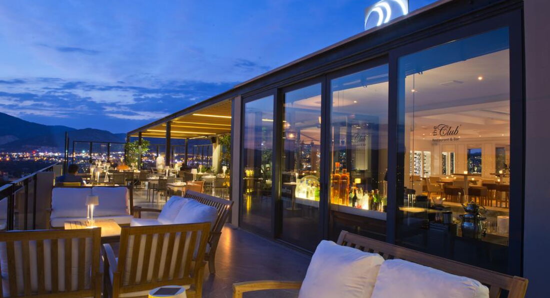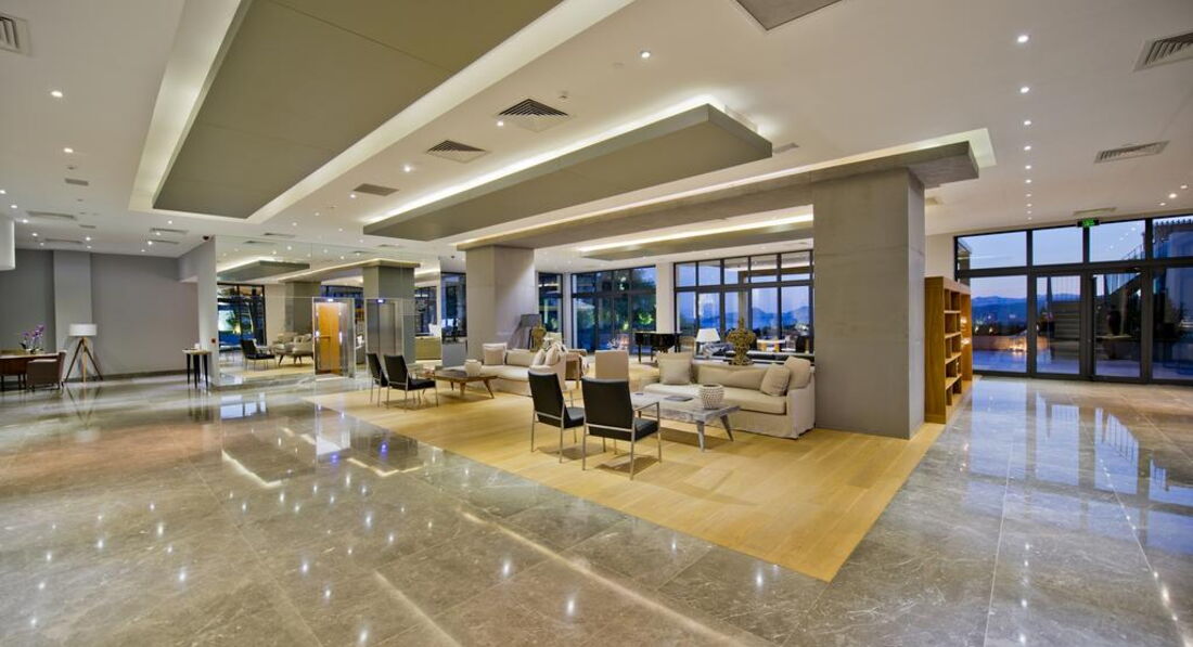 Територія та послуги: • Відкритий басейн • Дитячий басейн • Критий басейн • Бар • Wi-FI у лобі • Лікар за викликом • Пральня • Хімчистка Розваги та спорт: • Тренажерний зал • Тенісний корт із синтетичним покриттям, прокат снярядження (освітлення корту - платно) • Сквош платно • Масаж платно • Сауна • Парна • Турецька лазня • Хамам Живлення: • Сніданки • Напівпансіон Розклад роботи основного ресторану: Сніданок 07:00-10:00, Вечеря (літній сезон) 19:00-22:00, Вечеря (зимовий сезон) 18:30-21:30 Пляж: Власний піщано-гальковий пляж. На пляжі шезлонги, матраци, парасольки безкоштовно, рушники платні. Автобус на пляж: 3 десь у день.