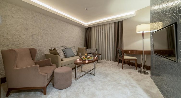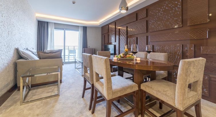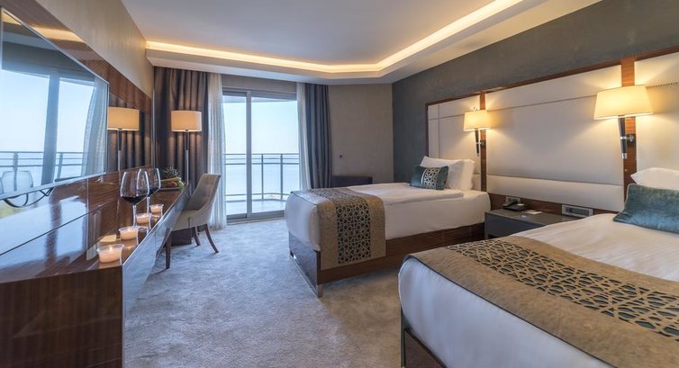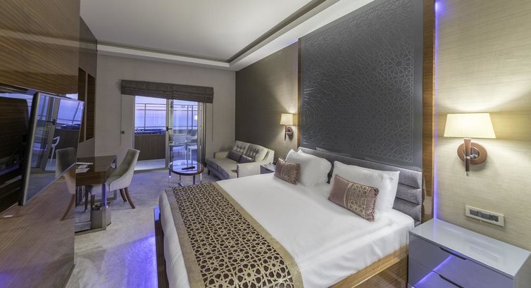 Типи номерів: • 222 superior room (з них 2 номери для інвалідів, макс. 3 особи, 34 м2). • 60 junior suite (вітальня, спальня, макс. 3+1 чол., 53 м2) • 78 family suite (вітальня, 2 спальні з дверима, макс. 5 чол., 71 м2)У номері: • ванна та душ • набір для приготування чаю/кави • сейф: у номері, платно • зміна білизни: 2 рази на тиждень • кондиціонер: центральний (superior room); індивідуальний (junior/family) • room service: платно • телефон • підлога: ламінат (або керамічна плитка) • прибирання номера: щоденно • фен: є • міні-бар безкоштовно (вода – щодня) • Інтернет: Wi-Fi, безкоштовно • телевізор: є (російські канали)