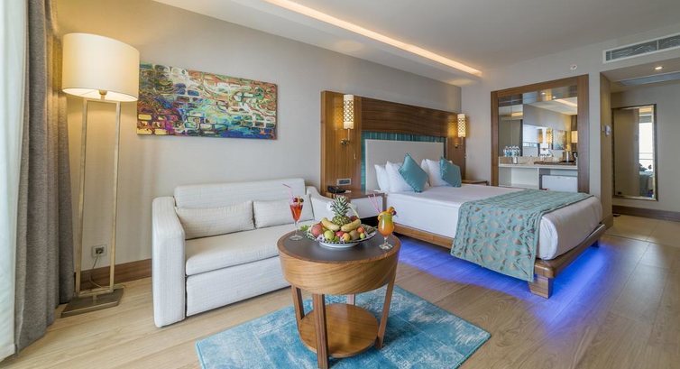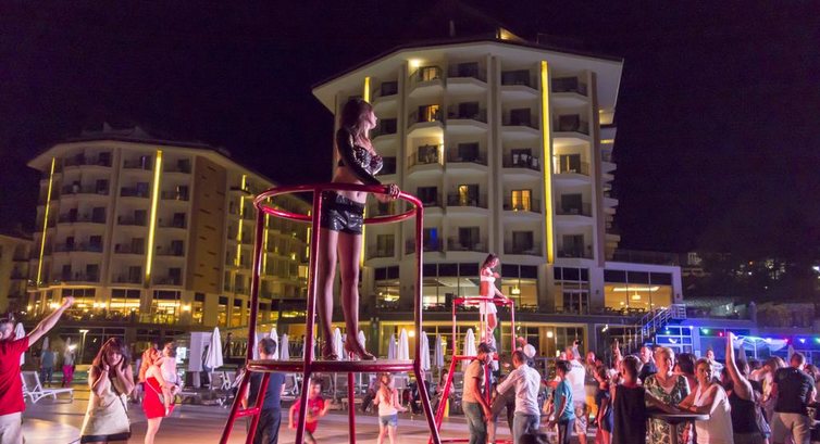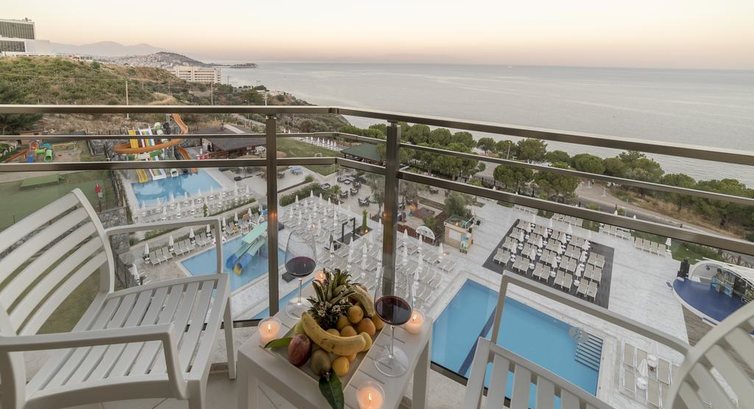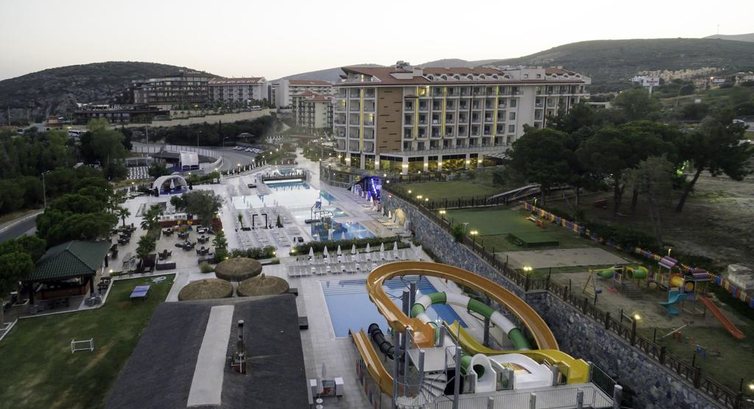 Територія та послуги: • дієтичне меню • Інтернет-кафе платно • спа центр • хімчистка • бари: 4 • конференц-зали: 1 • пральня є • ресторани: 1 • ресторани a la carte: 2 (турецька та італійська – за попереднім записом, відвідування одного ресторану безкоштовно) • басейни: 3 (відкриті) • біля басейну рушники: безкоштовно • Wi-Fi безкоштовно • біля басейну парасольки, шезлонги, матраци: безкоштовно • Кабінет лікаря • водні гірки: 5 • магазини Розваги та спорт: • сауна безкоштовно • аеробіка безкоштовно • дискотека безкоштовно • прокат тенісних ракеток та м'ячів безкоштовно • ігрові автомати платно • джакузі платно • масаж платно • освітлення тенісного корту платно • уроки тенісу платно • більярд платно • тренажерний зал безкоштовно • бадмінтон безкоштовно • турецька лазня (хаммам) безкоштовно • дартс безкоштовно • гольф платно (гольф академія; Golf club за 15 км від готелю розташований Kuşadası International Golf Club) • пілатес безкоштовно • водні види спорту платно • аквапарк безкоштовно • бочче безкоштовно • настільний теніс безкоштовно • баскетбол безкоштовно • тенісний корт безкоштовно Для дітей: • дитячий буфет • дитячий клуб (4-12 років) Живлення: • все включено Пляж: Власний піщано-гальковий пляж. Автобус до пляжу безкоштовно. На пляжі парасольки, шезлонги, матраци, рушники: безкоштовно.