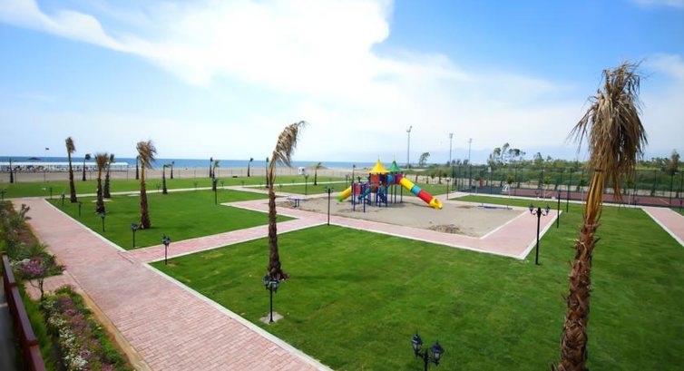 Территория - маленькая, но грамотно оформлена, классные горки с плюшками, есть и крытая секция бассейна и 2 открытых бассейна. У бассейнов 2 открытых бара, ресторан по меню работает после завтрака ( очень вкусные блюда, особенно Пиде). Также бар в холле и в кондитерской. А, да, кондитерская работает тоже после завтрака и почти до ужина, там масса сладостей и мороженое.