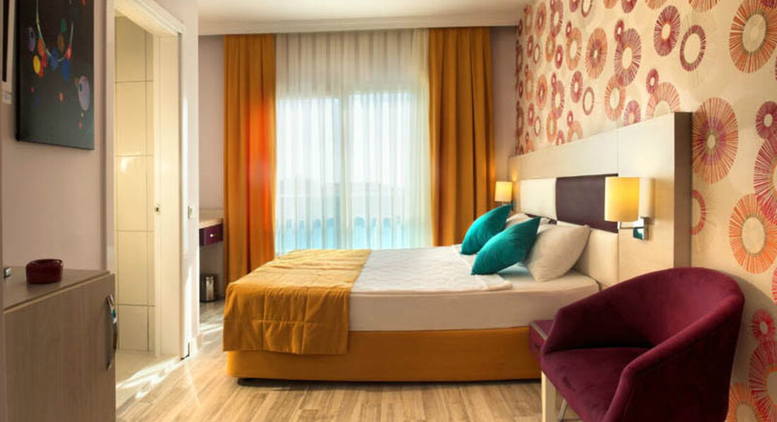 Отдыхали в этом отеле с семьей (дети 3 года и 7лет) с 29.05.2017 по 08.06.2017г., туроператор анекстур. В отель приехали в 10 утра, заполнили все документы, но номер пока был не готов. Нас отправили на завтрак, потом сказали где мы можем оставить вещи и переодеться, и мы ушли на море. Персонал весь очень приветливый и доброжелательный. Пришли обратно к 12, нас проводили в номер. Вещи помогли донести. Номер был у нас superior. В номере 1 двуспальная кровать, 1 односпальная, и кресло-кровать. за счет этого номер кажется тесноватым. Но мы там только спали, поэтому очень даже неплохо. Номер, чистый, светлый, с хорошим ремонтом.
