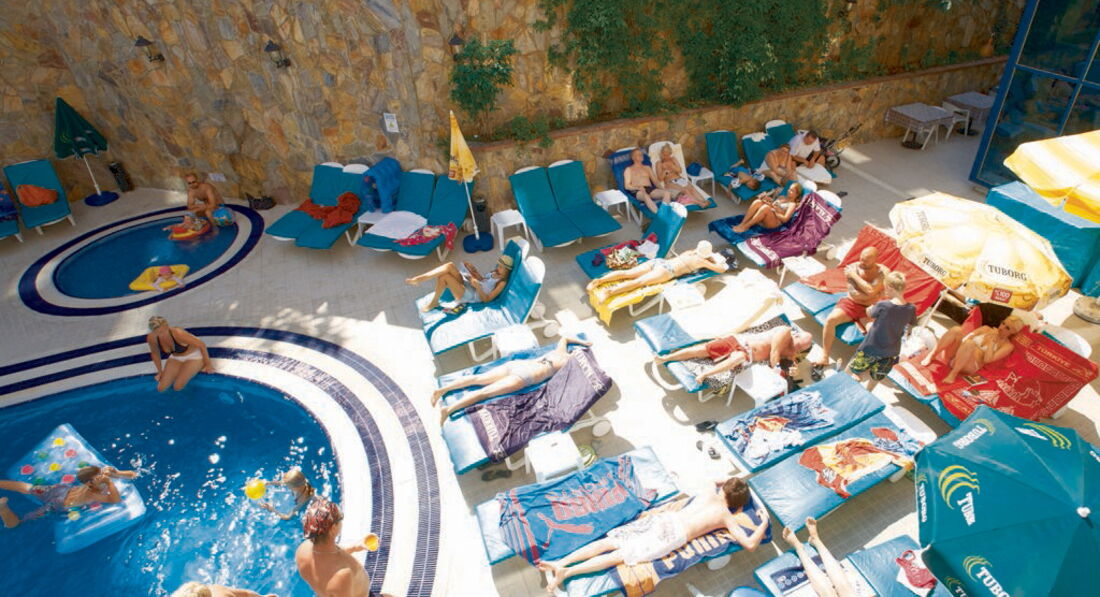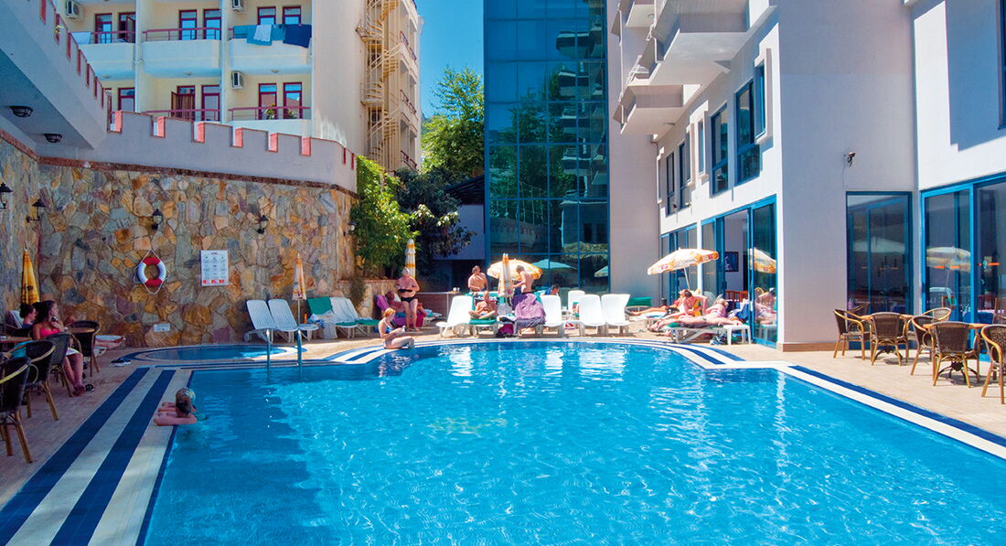 Отель городского типа, в самом центре Аланьи, поэтому территории нет. Но при выходе из ресторана есть небольшой бассейн. Бассейн чистый. С детьми лучше подобрать отель с большой территорией и с анимацией. В отеле без изысков, но чисто. Хороший санузел в номере, белье и полотенца не хуже, чем в "пятерках", есть фен, шампунь, лосьон для тела. В апреле еще не было автобуса на пляж, говорят, он будет в сезон, но до пляжа прогуляться не проблема. Минут 10 по городу с глазением на всякие магазины. Кстати, как рассказал гид, в Турции всегда прав водитель, поэтому переходите дорогу, пропуская весь поток машин. Пляж замечательный! И заход в море без камней. В наш заезд в отеле отдыхало много поляков - постоянно пьющий, жрущий контингент. Такое впечатление, что им больше ничего не интересно, кроме бара. В лобби есть бесплатный wi-fi, в номере не ловит, но этого и достаточно. Уборку делали каждый день! Мы сами отказывались. Теперь о питании. Для меня всё очень даже неплохо. Обычный завтрак из яиц, сыр, помидоры, огурцы, творожный сыр, йогурт. Очень вкусный хлеб. Обед: супчики каждый день разные, лучше чем в египетских пятерках, рыба или курица или котлетки, овощи, рис, фасоль. Ужин: похож на обед, но что оооччень удивило - повар на улице у бассейна делал шашлыки и шаурму. Это вкусно! Кстати повара постоянно смотрят за тем, чтобы в контейнерах не было пусто. Официанты убирают посуду моментально. Скатерти, конечно, не стирались и не менялись, но это и везде так. Стоит кофемашина, проблем нет, любой вид кофе на выбор. С чаем есть термостат, пакетированного чая нет. Всегда есть лимоны. Из фруктов были яблоки и вкусные-превкусные апельсины, но это апрель. Не понимаю тех, кто начинает ныть по поводу однообразия меню. Скажите, а дома вы какие изыски себе каждый день готовите? По поводу алкоголя не могу судить о его вкусе-качестве, т.к совсем не пробовала, просто не хотела. Есть там и пиво и водка и вино всякое. Кола и юпи тоже есть для любителей. В кулере всегда вода. Отель рекомендую для взрослой категории, особенно тем, кто любит пошопиться во время отдыха.
