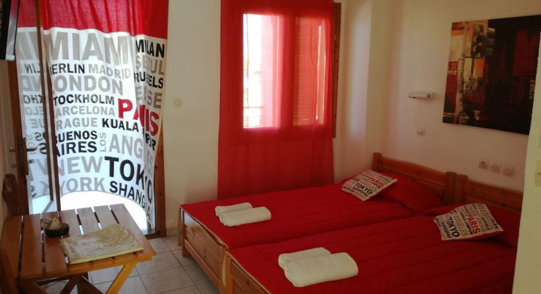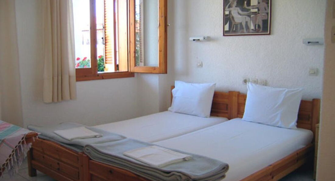 Маленький готель у центрі мальовничого курортного сел. Каліфея. Простота стиль, просторі номери з кухнею. Поруч із готелем розташовано безліч магазинів, барів, грецьких традиційних таверн. Бурхливе курортне життя не затихає тут ні на мить.