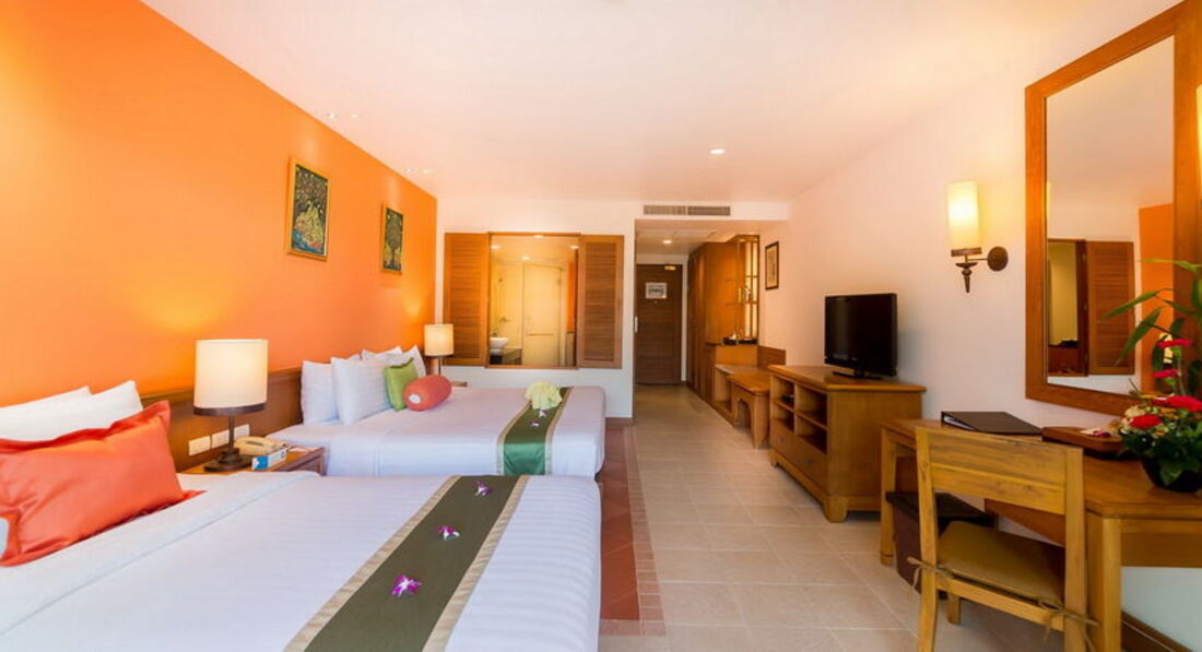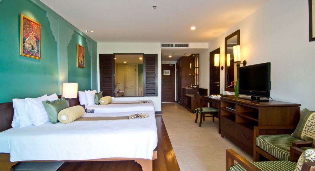 Ездили семьёй в любимую страну в июле. Встретили нас приветственным коктейлем, чемоданчики наши быстро взяли и унесли. в номер проводили. В номере оказался большой балкон (на нем помещался стол два кресла, лежак, деревянная сушилка для белья) вообщем супер. На балконе мы все время кушали и отдыхали вечером. Номер обычный (кровать большая, кровать полуторка, тумбы, стол, кресла, телевизор с плоским экраном и 2 русскими каналами, чайник, наборы для чая, кофе, холодильник, сейф, шкаф, ванная, душ, кондер работал исправно. вообщем как везде. Завтраки хорошие. Территория шикарная. Бар на пляже. 2 бассейна. Отель очень понравился, но цена его сейчас очень сильно выросла. Кстати на пляже всегда чисто, чистый песок, пальмы служат тенью, ходит охрана и днём и вечером. При отеле есть спа салон дорогой. но если выйти на дорогу, справа после магазина 7-eleven есть массажный салон также от отеля, только почему то цены там дешевые. Ходили - мне понравилось, мужу нет. Ещё рядом есть тур агенство, через него ездили на экскурсии. Отель рекомендую!