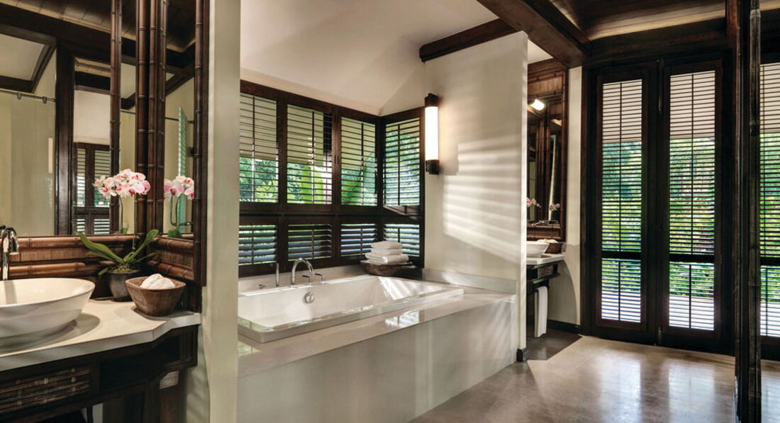 У готелі 98 дворівневих павільйонів-котеджів (вітальня на першому поверсі, спальня на другому) та 4 розкішні приватні вілли.