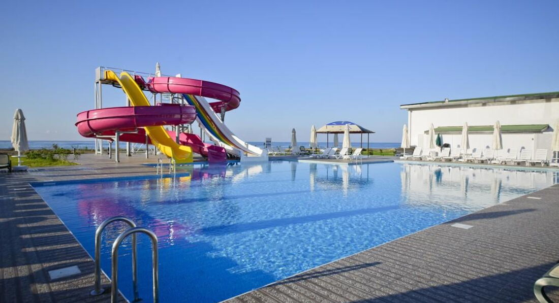 Итак. В Турции не впервые и сравнивать есть с чем. Отель новый - персонал в большинстве своем молодой и соответственно ПЛОХО говорит по русски. Я думаю, к концу сезона научатся нас наглых ( а нам зачем иностранный язык учить?) понимать. Анимации я особой не увидела, может потому, что и не искала. Алкоголь отличный. Коктейли, пиво, виски.....вино - да что хотите в 3 барах хоть упейся. Пляж - вот здесь первые минусы - рядом в море впадает река...может быть даже чистая, НО, блин, ХОЛОДНАЯ. Итог- вода в море всегда была прохладной именно на нашем пляже. Попробовали отойти подальше и не удивились - вода там теплее. Детской зоны для купания почти нет - сразу глубоко. Смесь камней и песка - вход в море в раскорячку с массажем стоп. Есть пирс, высокий, с лесенками, написано, что прыгать нельзя, но кого бы это останавливало. Лежаки, матрасы - все есть, всем хватало. Пляжный бар далековато, соответственно туалет тоже. Ехали именно ради моря, поэтому так подробно. Номер хороший, все целое рабочее чистое. В мини баре сок, вода - постоянно пополняли. Убирали каждый день. Вай фай ловил только на нижних этажах- хочешь общаться топай в бар или столовую- минус это или плюс - решайте сами. В номере вай фая не было. Есть канал СТС с отставанием программы на пол года. До 12 ночи в баре у бассейна ОРЕТ музыка - хотите спать - запасайтесь берушами. Кормят отлично, рекомендую приходить к началу обеда и тем более ужина, народу много - учитывайте это. Бассейны чистые, горки работают, есть мини бассейны для детей под тентами. Отдыхающие - большинство русские, украинцы, немного немцев, поляки и т.д. Вроде никто не ссорился. Турки приветливые, старались угодить. Еще один минус - вокруг отеля ничего... единичные крохотные магазинчики, не смогли купить даже сувениры. Хотите зрелищ - берите экскурсии.