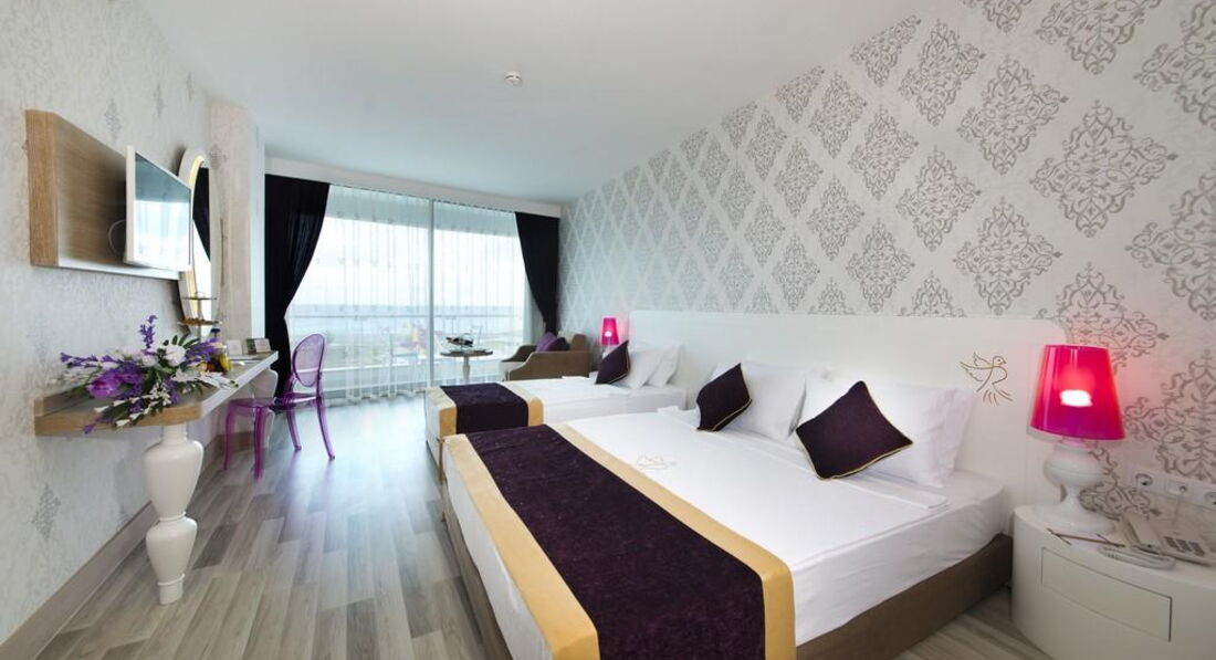 Отдыхали в отеле с 14 по 21 мая. Прилетели в Турцию в 7 часов перелет без задержек, в отеле уже были в 9:30, дорога не напрягает. Засели сразу по приезду. Вместо 2х стандартов предложили фэмили рум, посмотрев номер мы согласились. Номер большой шикарный, убирали каждый день, в мини баре каждый день соки, вода с газом и без, шампунь, гель для душа так же регулярно пополняли.