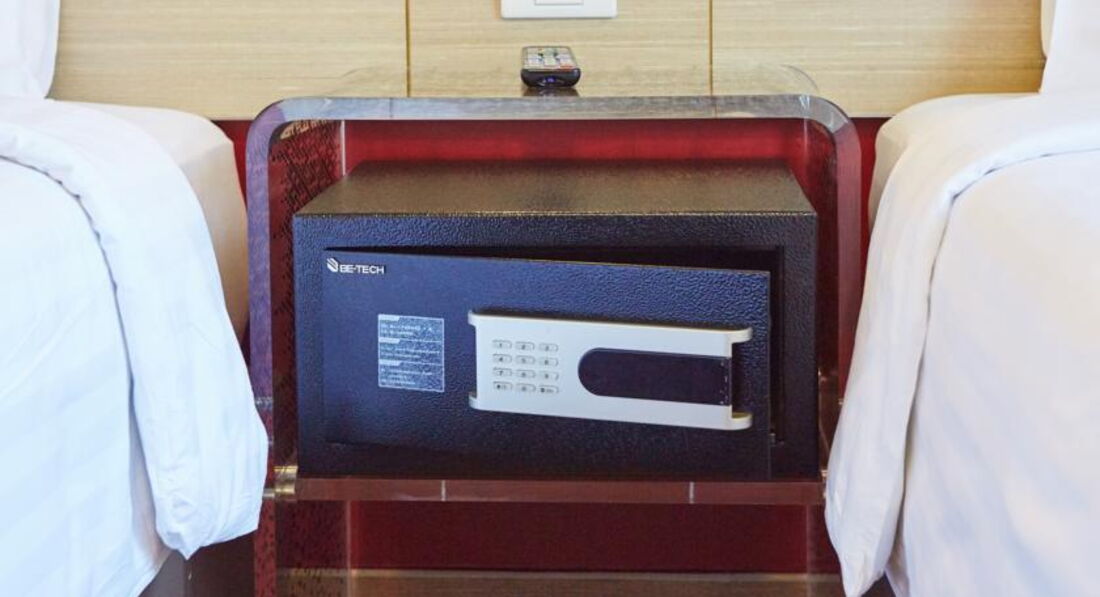 Есть вместительный сейф прикрученный к стеклянной тумбочке. Есть телевизор с несколькими русскими каналами и почти севшими батарейками. Достойный бесплатный wifi.