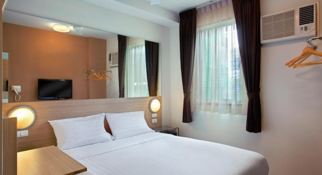 Отель выбирали из новых и поближе к центру. Этот отель подошёл идеально. Своей территории и бассейна в отеле нет, но это нисколько его не портит. Приятно было жить в центре, недалеко от цивилизации. В отеле всё новое, на входе встречает швейцар. Депозит 100 долларов, но не помню в батах или долларах, извините. В холле расположено несколько компьютеров с бесплатным интернетом, где мы смогли зарегистрироваться на рейс. Также установлен экран с фотиком, где можно сделать стильные фирменные фотки из отеля и тут же отправить их себе на E-mail. Вообщем молодёжно и современно. Холлы, лифты, чистые и новые. Завтрак в соседней кафешке Tom Tom,s за стенкой. Кафешка чистая, светлая, уютная. Завтраки американские: довольно вкусный кофе, булочки с джемом, яичница, бекон и т.д. Сытно, на выбор 3 или 4 завтрака, не помню. Номера маленькие, но негатива это не вызывает, т.к. в номере большая кровать. Собирались в номере вшестером, всем места хватало. Вход по карте, дают 2 штуки. Пока карта не вставлена в номере электричества нет, т.е. когда вас нет зарядить что-либо или оставить включенный кондиционер нельзя. Но так сейчас почти везде. В номере современный телек, вместо стола полочка, две прикроватных тумбочки, сейф, фен. Оставляли деньги, документы в сейфе, всё было цело. Однажды наши друзья забыли код от сейфа, им быстро всё открыли по сервисному коду, бесплатно. Шкафа нет, увы, одежду складывать почти некуда, только вешалки, с этим эконом-вариант. Убирались не очень, чаевые на качество уборки никак не влияли. Окна выходили во двор, шума с улицы не было, номера на дорогу скорее всего шумные. Подарил персоналу русскую шоколадку заселили с окнами во двор. Wi-Fi в номере бесплатный, ловит нормально, но скорость не очень - 2-3 Мбит/с и при больших объёмах загрузки падала ещё, видимо, настроено специально. Пароль от Wi-Fi на ресепшене. Кондиционер чуть-чуть шумноват, но не критично. На потолке дополнительно есть вентилятор. Насекомых и плесени не заметили ни разу, у нас было 3 разных номера. Отель рекомендую, всегда рассматриваю его для поездки, если есть хорошая цена и свободные номера.