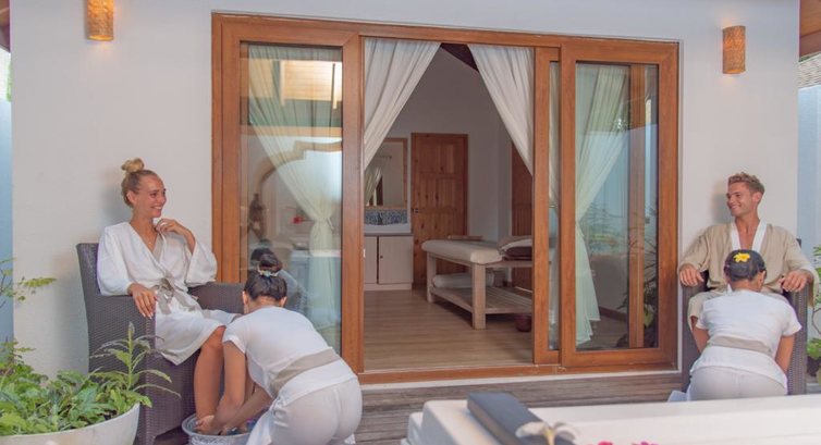 • Water villa (78 кв. м): терас зі спуском у воду, спальня з вітальнею (ліжко king-size або два окремі ліжка), ванна кімната з ванною і душем, душ з функцією «тропічний дощ» на відкритому повітрі. Додатково халати. Розташовані на палях над водою