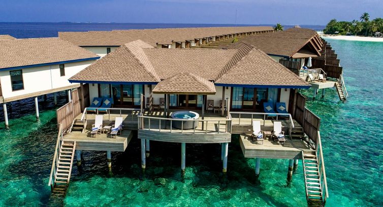 • Water Villa Suite (226 кв. м): тераса зі спуском у воду, вітальня, 2 спальні, 2 ванні кімнати (кожна – з ванною та душем з функцією «тропічний дощ» на відкритому повітрі), гостьовий туалет. Додатково халати. Розташовані на палях над водою