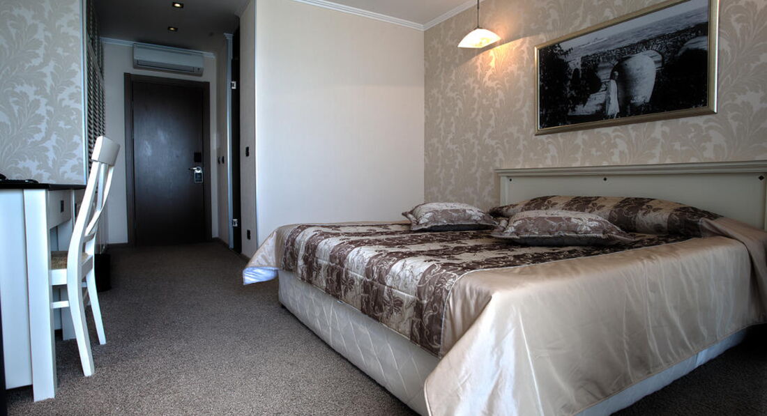 я посетила данный отель в июле 2013 года. отель находится на берегу черного моря на променадной улице вдоль побережья. Отель очень уютный, красивый , современной постройки. В номерах новая мебель , сан. техника, кондиционер, холодильник,телевизор , большой балкон , на котором стоит стол и два стула, что позволяет любоваться морем в любое время , засыпать и просыпаться под шум прибоя. В номере кровать , стол , тумбочки прикроватные , посуда , холодильник, сейф , халат и тапочки. Уборку производят регулярно . в отеле есть спа салон, по доступным ценам множество процедур. Питание организовано заказное (не шведский стол) на завтрак на выбор "болгарский", "континентальный", "французский" завтраки , дополнительно можно заказать омлет , мюсли с йогуртом, сок и на выбор кофе или чай. ужинать и обедать можно в отеле за плату , но рядом много кафе где не дорого и вкусно готовят море продукты и не только - болгарская кухня очень вкусная , все очень не дорого. Рядом с отелем бассейн с лежаками , у моря лежаков маловато , но к обеду как правило они освобождаются если не успели занять. Ближайший магазин (супермаркет ) находится в 20 минутах ходьбы от отеля. тур в данный отель был продан "Библио глобус", забронировали место в отеле очень быстро. в Болгарии принимала фирма "Бон Тур", в отеле гид был молодой человек - Иван, который хорошо говорит на русском языке, преподносит всю необходимую информацию быстро и доступно, помогает с выбором экскурсий. Подъехать к отелю на большом автобусе невозможно , соответственно вас будут забирать и отвозить на экскурсии по Болгарии на автомобиле и вы будите пересаживаться на месте стоянки автобусов. К сожалению на экскурсию в Стамбул приобретенную в Библио глобус меня из отеля не забрали . Мне пришлось пешком идти в центр Бальчика (в гору , по жаре, с сумкой) где меня забрал автобус. Когда возвращалась из Стамбула меня в 4 часа ночи высадили на дороге и мне пришлось идти до отеля пешком , так как такси вызвать не было возможности. Я считаю , что данная проблема должна решаться организаторами экскурсии, так как иной возможности добраться до отеля нет возможности. так как у дворца Королевы Марии на побережье стоит шлагбаум который ограничивает подъезд к отелю, автобусы подъехать туда не могут так как дорога очень узкая и парковка о дворца не предназначена для стоянки автобусов. Отель очень понравился, рекомендую его тем кто любит тихий и спокойный отдых.
