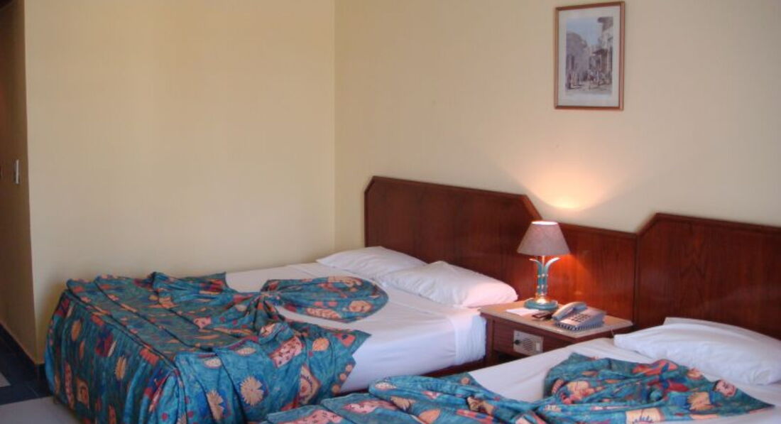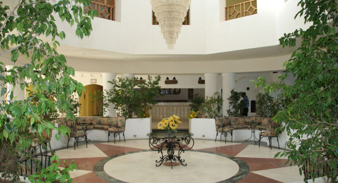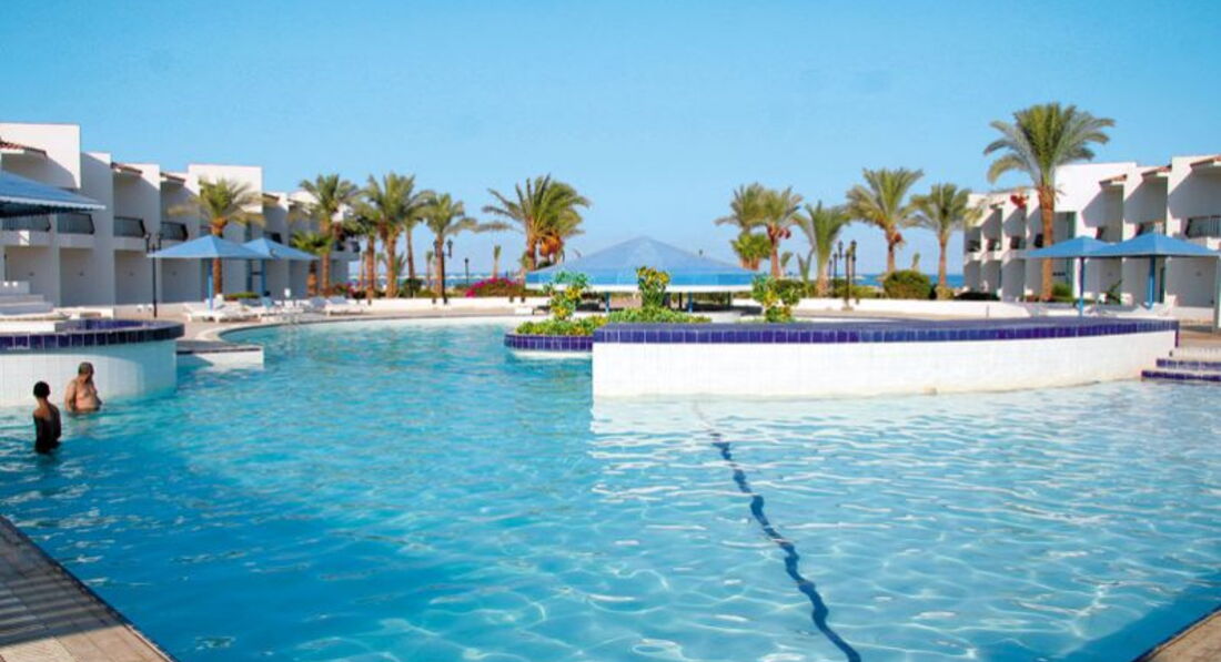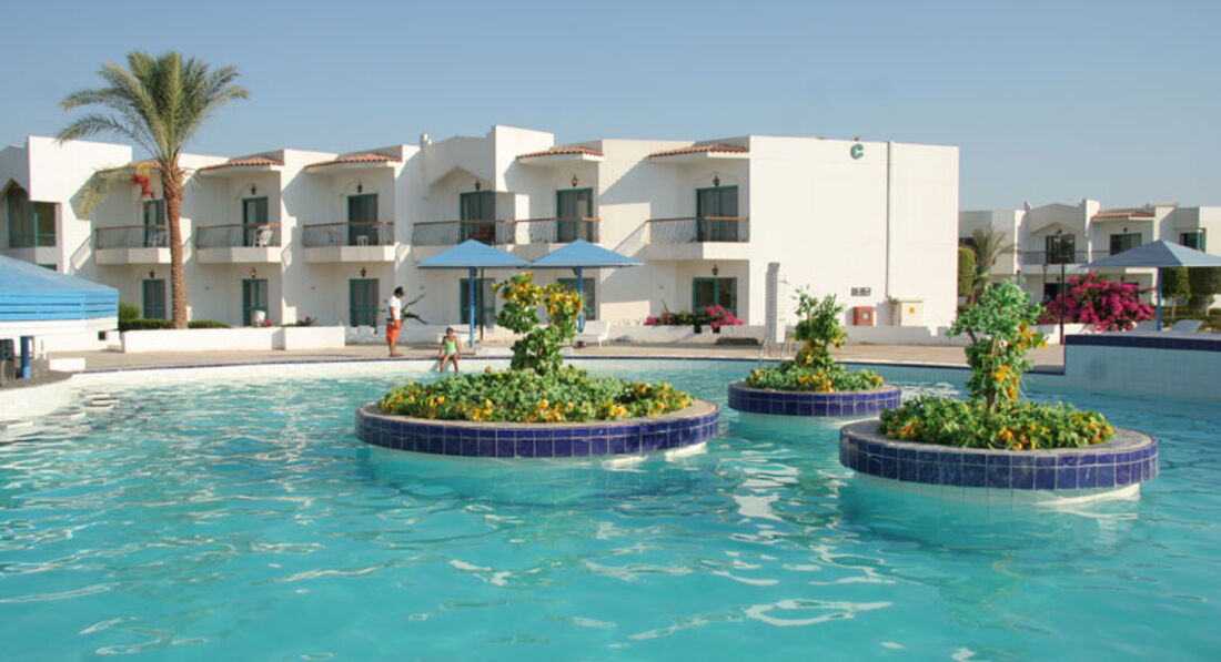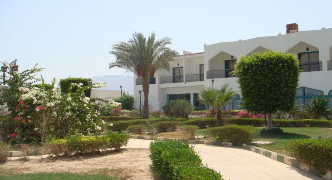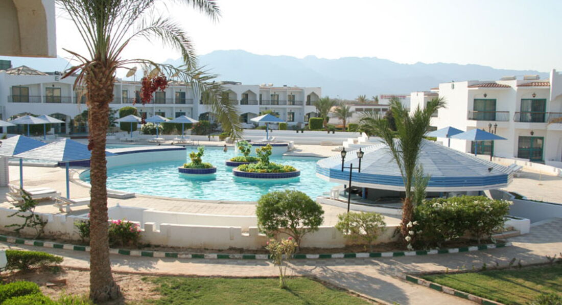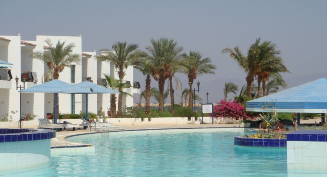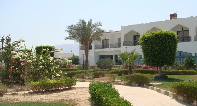 Нашли тур за 17800 руб. на двоих с вылетом из Москвы, 7 дней, все включено. Несмотря на неважные отзывы по отелю, решили рискнуть. Была цель- погреться, покупаться, посмотреть рифы, кораллы,рыбок.Поездки на экскурсии не планировали. Встретили, довезли, поселили на 1 этаж. Просили на 2й, говорят - нет мест, хотя видно, что народу мало. С помощью 10 дол. за 5 мин решили вопрос со 2 этажом. Номер большой, балкон, вид на море. Сантехника работает, хол и гор вода есть всегда. Уходя, включали кондиционер, приходили как в морозильную камеру, отключали, через пол-часа снова включали. Комаров не было. Убирают на территории и в помещении постоянно, если что надо сразу дают (туал бумагу, полотенце...)Отель состоит из 4-х корпусов, русских селят в один. Территория зеленая (пальмы, цветы), ухаживают, поливают постоянно. Еда однообразная, мы налегали на курицу, салаты есть опасались. Вкусная выпечка и сладости, дыня, арбуз всегда на обед, ужин. Напитки при входе в ресторан и у бассейна. В бассейне соленая хлорированная вода, купались вечером после заката. Пляж- песочек широкой полосой, мелкий пологий вход, на глубине 1,5 м рифы с рыбками - ложись с маской и смотри - красота! По пляжу ежедневно ходят верблюды с бедуинами, туристы их кормят булочками, кто хочет - катается за 2 дол. В 10 км находится деревня, где мы брали питьевую воду 6 л за 1 дол, фрукты по 1 дол за кг, сувениры - там дешевле, чем в отеле. Такси в оба конца 2 дол. с человека. В 6 ч вечера уже темно, развлечений там нет. По ТВ наш 1 канал показывают. Рассвет в 5 ч, т.ч. вставать можно в 6, завтрак с 7 ч. На пляже лежаков много, всем хватало, т.к. народу было мало. Кто ездил на экскурсии в Каир и в Израиль говорили, что очень тяжело по жаре, на границе с Израилем держали 5 часов. Температура была 37-39, море 30. Переносится хорошо, т.к. постоянно дует ветерок, сухо.В общем, в отель ехать можно, ничего в нем страшного и плохого нет, мы очень хорошо отдохнули за небольшие деньги.