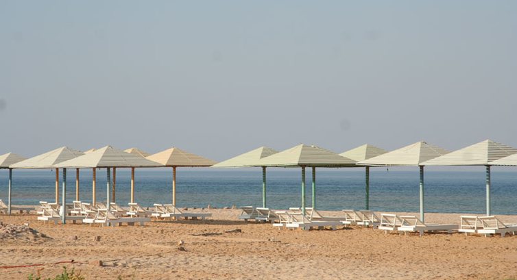 Подробно о пляже: песчаный пляж, с нормальным входом в море. Несколько раз переходит в мелкую косу, подойдет для самых маленьких детей, и для плохо плавающих, и для ныряльщиков. Так сказать, на любую глубину, и по щиколотки, и по пояс, и достаточной глубины. Особенно хвалят невероятно красивый коралловый риф в 100 метрах от берега. Наши друзья побывали в Хургаде, Макади, Табе, но эти рифы они оценили особенно высоко. Тапочки от морских ежиков мы все же на всякий случай обували.