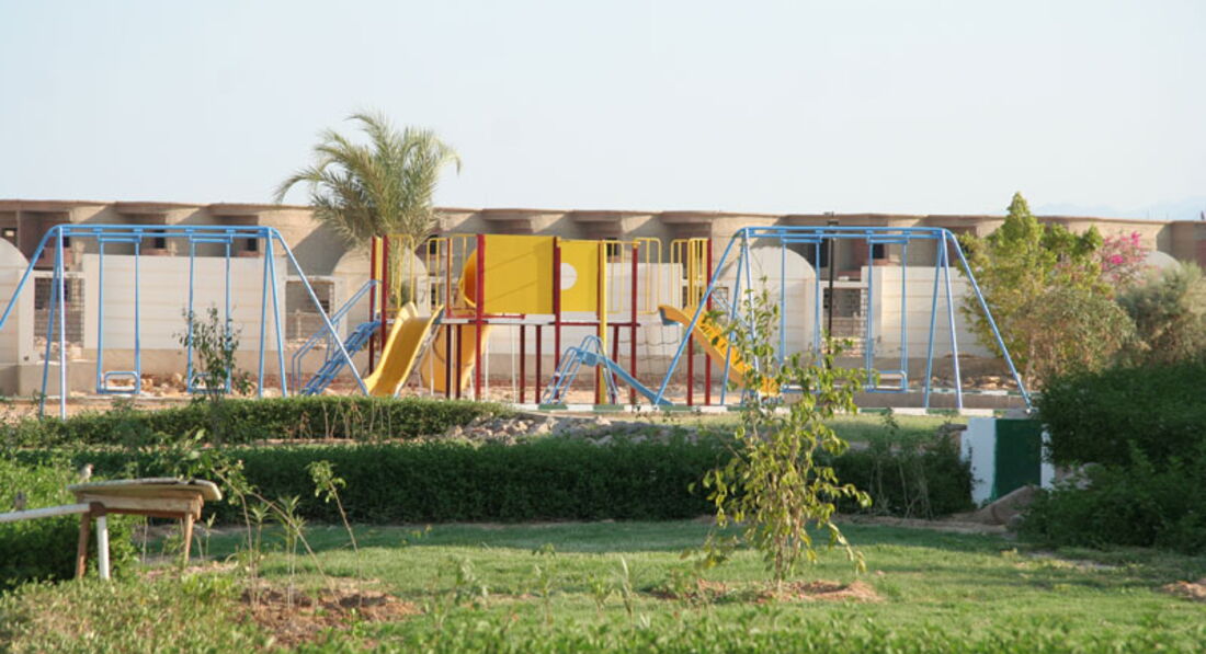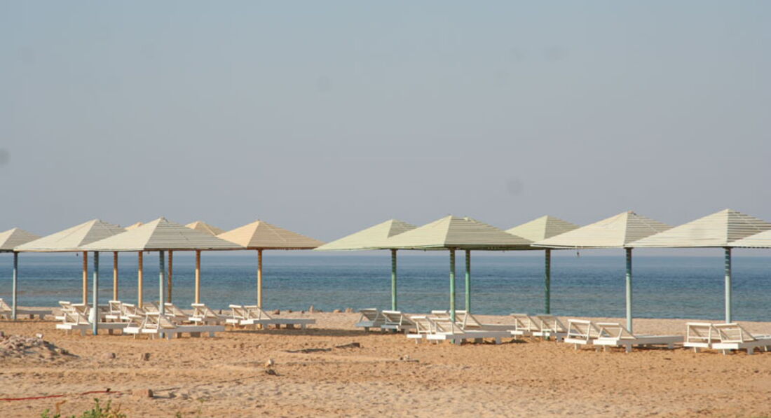 Отель расположен среди пустыни в так называемой "курортной зоне". но по сути, пойти там некуда, если не считать одиноких прогулок вдоль трассы под радостны вопли местных жителей. сам отель имеет неплохую зелёную территорию, поливаемую, к сожалению, канализацией, о чём свидетельствует запах, распространяемый по округе. пляж грязный, неухоженный, подруга нашла там зарытый в песок пакет с хлоркой - "дезинфекция", заход в море только в тапках, много обломков кораллов и камней. нужно заметить, что в декабре там, в отличии от шарма, очень прохладно, ветра дуют со страшной силой, в море входить холодно. но те, кто входил и плавал с маской, были в восторге, говорят, черепахи в 100 метрах от берега живут. номера: на удивление есть работающие холодильник и телевизор, но грязно и бедно, бельё меняют, но вопрос: на что? у меня было подозрение, что просто местами, из номера в номер, либо оно просто не отстирывается, как и полотенца. питание: нормально, хотя подруга отравилась. разнообразия конечно нет, но просто нормально поесть можно. анимация отсутствует в принципе. нет её и всё! и самим веселиться нельзя, если без разрешения включить центр, то подойдут и ровно в 11 всё равно выключат. всё - тихий час. экскурсии покупать негде, только у гидов по безумным ценам. очень пожалела, что сэкономила и не поехала в шарм, те же деньги переплатила за 2 экскурсии. подойдёт для любителей экзотики и экстрима, а так же для взрослых непритязательных туристов, которые любят часами плавать с маской и спать здоровым сном остальное время. больше там делать нечего.