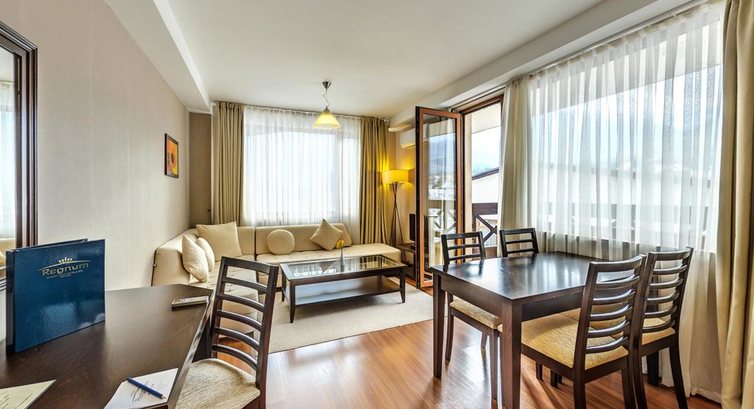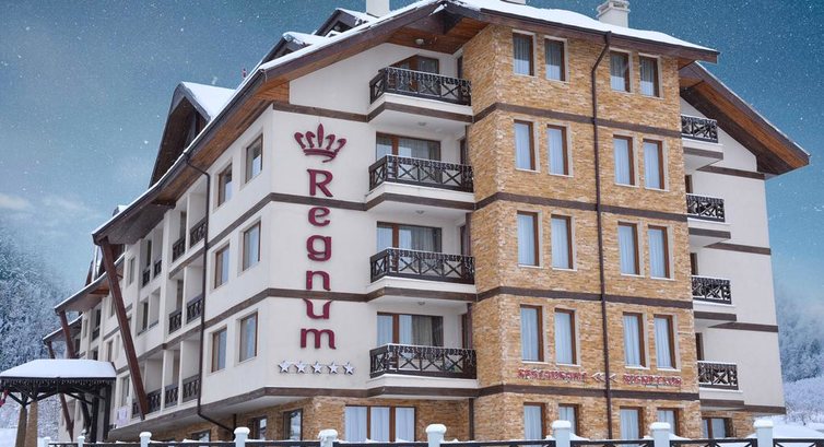 Приємно оформлений апарт-готель Regnum чудово розташований біля самого підніжжя гори Пірін у місті Банско. Звідси відкривається чудовий панорамний вигляд. Збудований у 2008 році. Останній ремонт проводився у 2013 році. Готель складається із п'яти з'єднаних корпусів. Готель відмінно підходить як для молодіжного, так і сімейного відпочинку.