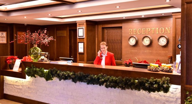 • ресторан на 180 місць, розкішні меблі, затишна атмосфера. Меню пропонує страви болгарської сучасної європейської та традиційної турецької кухні