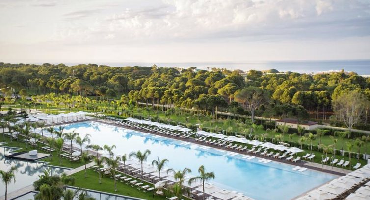Готель класу Люкс. Знаходиться в оточенні соснових дерев гольф-клубу Carya. Велика територія, просторі номери. З багатьох номерів відкривається чудовий краєвид на Середземне море. Перший готель у Туреччині має басейн для серфінгу зі штучною хвилею та дитячої школи з футболу від знаменитого клубу Chelsea. Реновація головного ресторану до 2020 року.