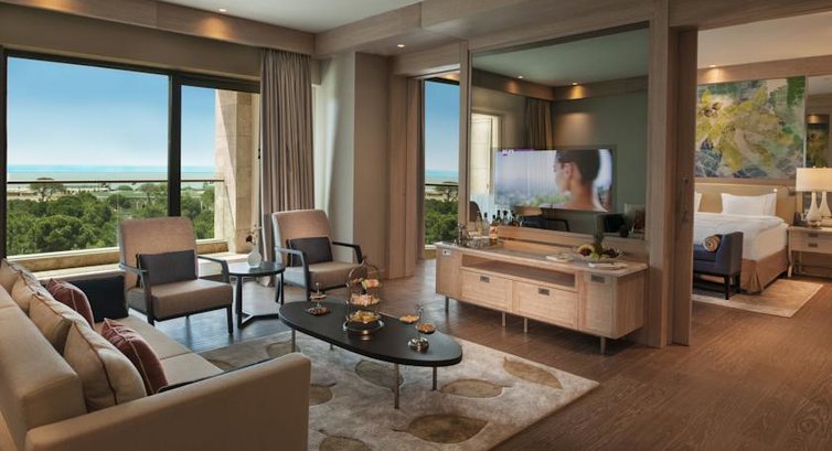 12 двокімнатних luxury suite sea view (вітальня з м'якими меблями, спальня з дверима, 2 ванні: одна з душем та джакузі, інша тільки з душем, макс. 4 чол., 100 м2, VIP-сервіс);