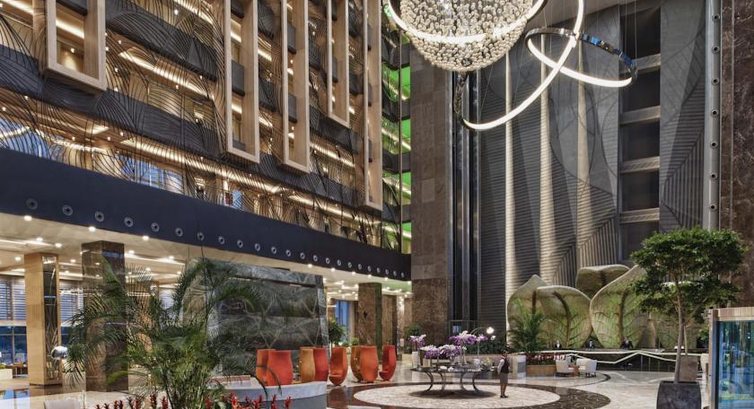 Отдыхали в отеле с 18.08 по 29.08.2016. Выбирали отель для медового месяца, нам нужен был современный отель высокого уровня. В принципе, данный отель соответствует этим требованиям. Но обо всем по порядку. Уровень отеля становится заметен уже на этапе подъезда к основному зданию. Это очень массивное строение, отделанное камнем, выполненное в современном стиле с элементами стекла и металла. Прямо перед отелем вертолетная площадка и собственно сам вертолет, что уже дает понять в отель какого уровня вы подъезжаете. Отдельно стоит отметить работу ландшафтного дизайнера, возле отеля гостей встречают ровные, зеленые газоны, фонтаны, яркие цветы, пальмы, скульптуры- все очень ухоженно. Здесь действительно есть на что посмотреть. Попадая в сам отель, удивляешься еще больше. Огромное помещение, гигантская люстра под потолком, глаза разбегаются от увиденного. Дорогая отделка и опять же сочетание метала, стекла и зелени, повсюду стоят живые цветы, на этажах целые палисадники, в интерьере очень много картин и в общем я был поражен как такое гигантское пространство так умело задекорировали и нашли каждой детали свое место. Интерьер действительно на 5 с огромным плюсом. После такого визуального эффекта я лично был немного разочарован тем, что встретили нас немного не под стать уровню такого отеля. Сложилось такое впечатление, что нас не ждут, а раз зашли то ок, никто не предложил нам выпить прохладительный напиток, после чего нас заметила хостес и отвела к рецепшн, где нам сообщили, что номер еще не готов и придется подождать( хотя у нас был договорён ранний заезд ). Думаю стоить отметить, что хостес была англоговорящая, что странно для Регнума у, которого целый штат хостес владеющих всеми основными языками( Русским в том числе) для удобства клиентов, ведь именно удобство и комфорт клиентов должно быть на первом месте у любого отеля. Опять же нас не встретили как молодоженов , супруге никто не вручил букет, и мы сами долго ходили разбирались в чем же дело, оказывается гест релейшен просто не прочитал сопроводительные письма от нашего тур агента. Уже после всех выяснений и 3 часов ожидания нам предоставили номер, стоит заметить, что с видом на море, а не на гольф поле, как мы бронировали, подарок в честь медового месяца, а супруге подарили букет цветов, что называется, выпросили) Для молодоженов в номере стоял тортик, фрукты, шоколад, бутылка вина, а еще креативная уборщица использовала розы после предыдущих гостей и усыпала кровать лепестками, а некоторые розы плавали в ванной. Немного странно для отеля такого уровня ,что были использованы чужие оставшиеся Цветы, хотя может это нормальная практика, не уверен. Номер такой же красивый, удобный и стильный, как и сам отель, в номере большая ванная комната и гардеробная, ну а фишка номера телевизор в зеркале, не всегда удобно, но уж точно красиво и необычно. Огромная кровать, очень удобная.