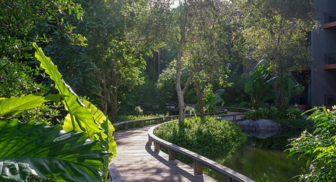 Отель весь в зелени, большие корпуса даже не видны почти.