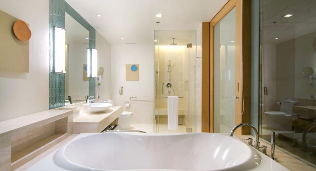 Душ с видом на фикус (стеклянная стена) красиво и прикольно. Два умывальника, есть душ на улице около бассейна. Единственное что не понравилось подушки неудобные (были до этого в Le Meridien Phuket Beach Resort 5 там они очень хорошие)
