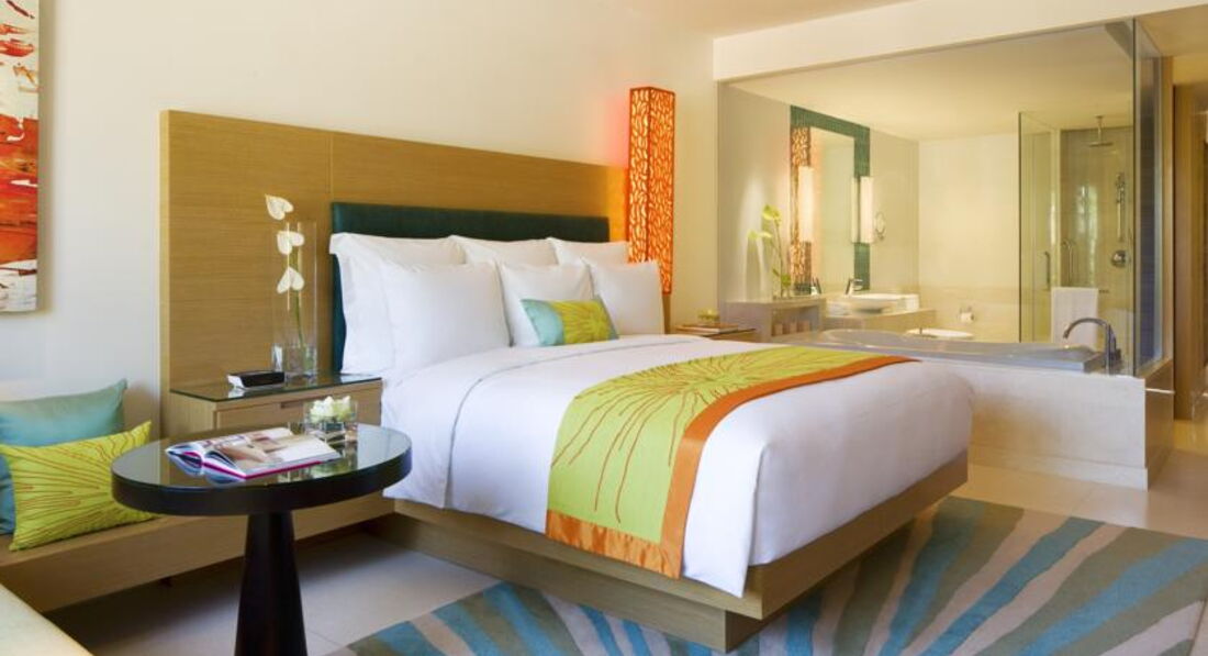 Остановили свой выбор на этом отеле в связи с прекрасным пляжем. Год назад отдыхыли в соседнем марриоте и поняли, что пляжа лучше просто не придумать! Отель отличный. При вьезде с нас не взяли никакого депозита, как было написано ранее. Оформили и заселили просто моментально, максимум 5-10 минут. При встрече угостили прохладительными напитками. В номере всё понравилось, всё чистое, новое. Достаточно вместительные шкафы, сейф, тапочки, халат, сланцы, пляжная сумка, утюг, доска, мыльно-рыльные принадлежности (качество не очень!!!!!!!!!), минибар. Катастрофически маленький холодильник!!!!!!!!! Телевизор ЖК и dvd проигрыватель. Нет русского канала, ни одного, так что если нужно-берите диски. Ежедневно в номер к качестве комплимента приносят свежие фрукты и иногда кондитерские изделия. Уборка номера на троечку конечно. Пол приходилось мыть заставлять, так как мы были с ребенком. И удивила не ежедневная смена белья, как обычно в 5 *, но это совершенно для меня не принципиально. В номере и ванна и отдельно душевая кабина. Очень стильно выглядит стеклянная ванная комната, которая при желании занавешивается жалюзи.