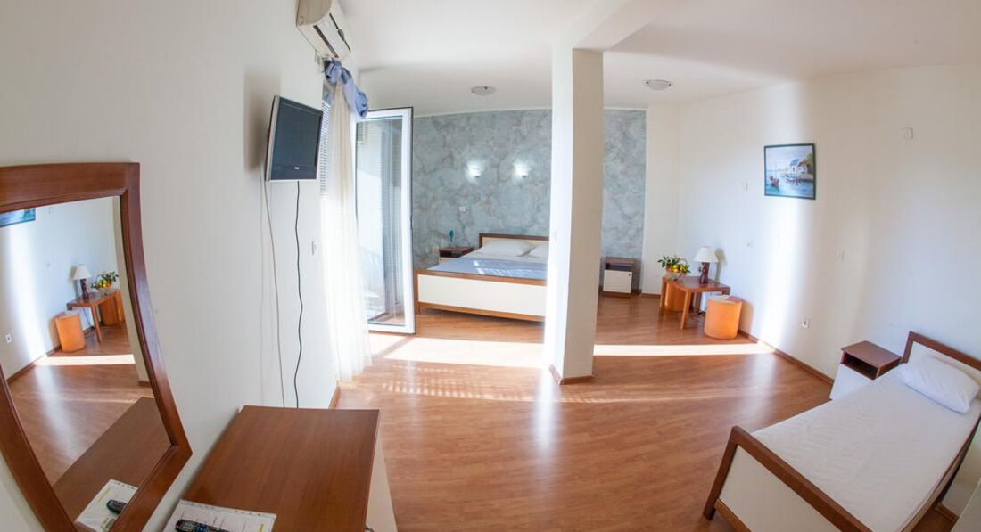 • TRPL №15: 35м2+ тераса 5м2 з видом на готель Аквамарин; три окремі ліжка