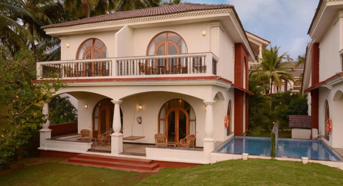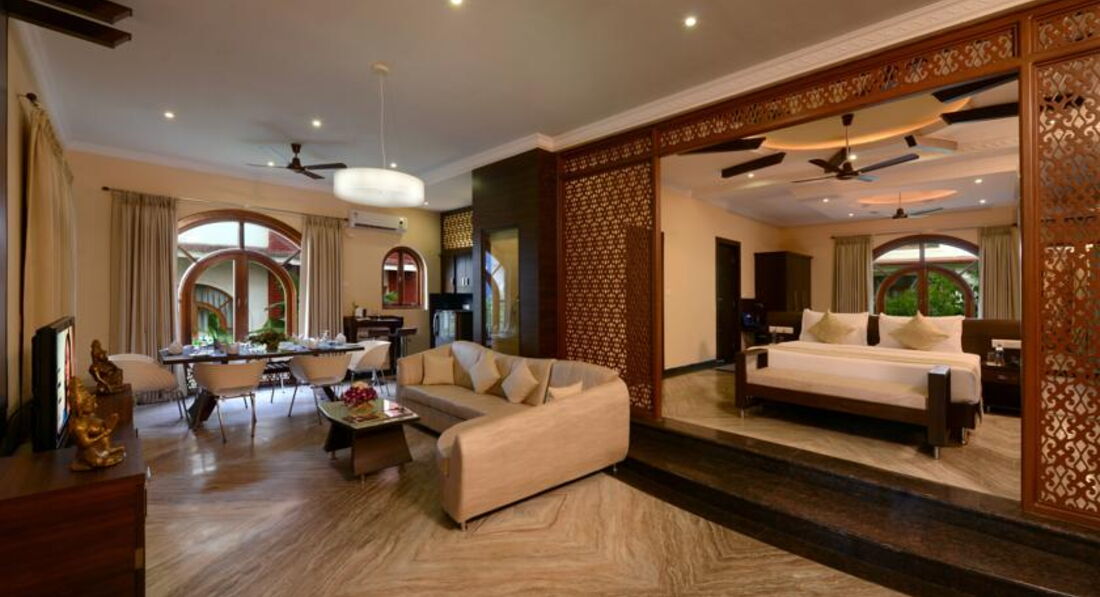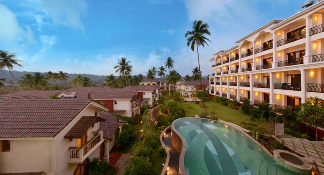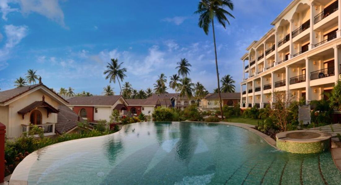 Этот большой красивый отель построен в 2010 году. Его можно поставить в один ряд с лучшими отелями Cеверного Гоа. Несколько раз в день ходит бесплатный шатл до пляжа, который находится в 2 км от отеля. Wifi платный ( 1ч/2 $), бесплатные сейф и вода в номере. На территории 5 ресторанов, 3 бара, 2 бассейна, однако выйти из отеля некуда. Отель предлагает все типы питания, от завтрака до «все включено». Проводятся занятия по йоге, есть фитнес-центр и центр аюрведы. Бесплатно настольный теннис, футбол, волейбол и т.д. Персонал отеля крайне услужлив. Также туристам наверняка понравятся большие стильные номера.